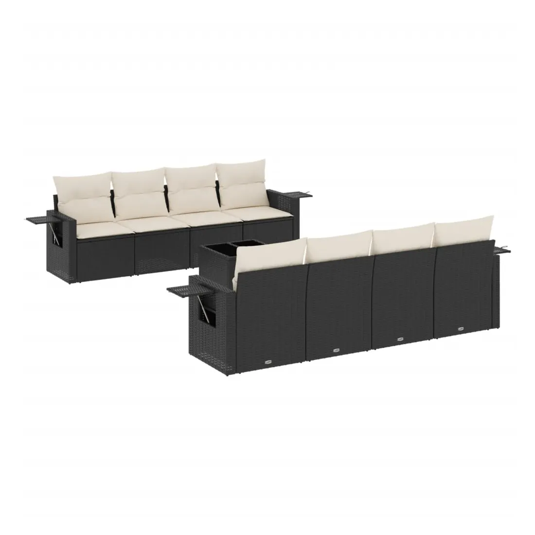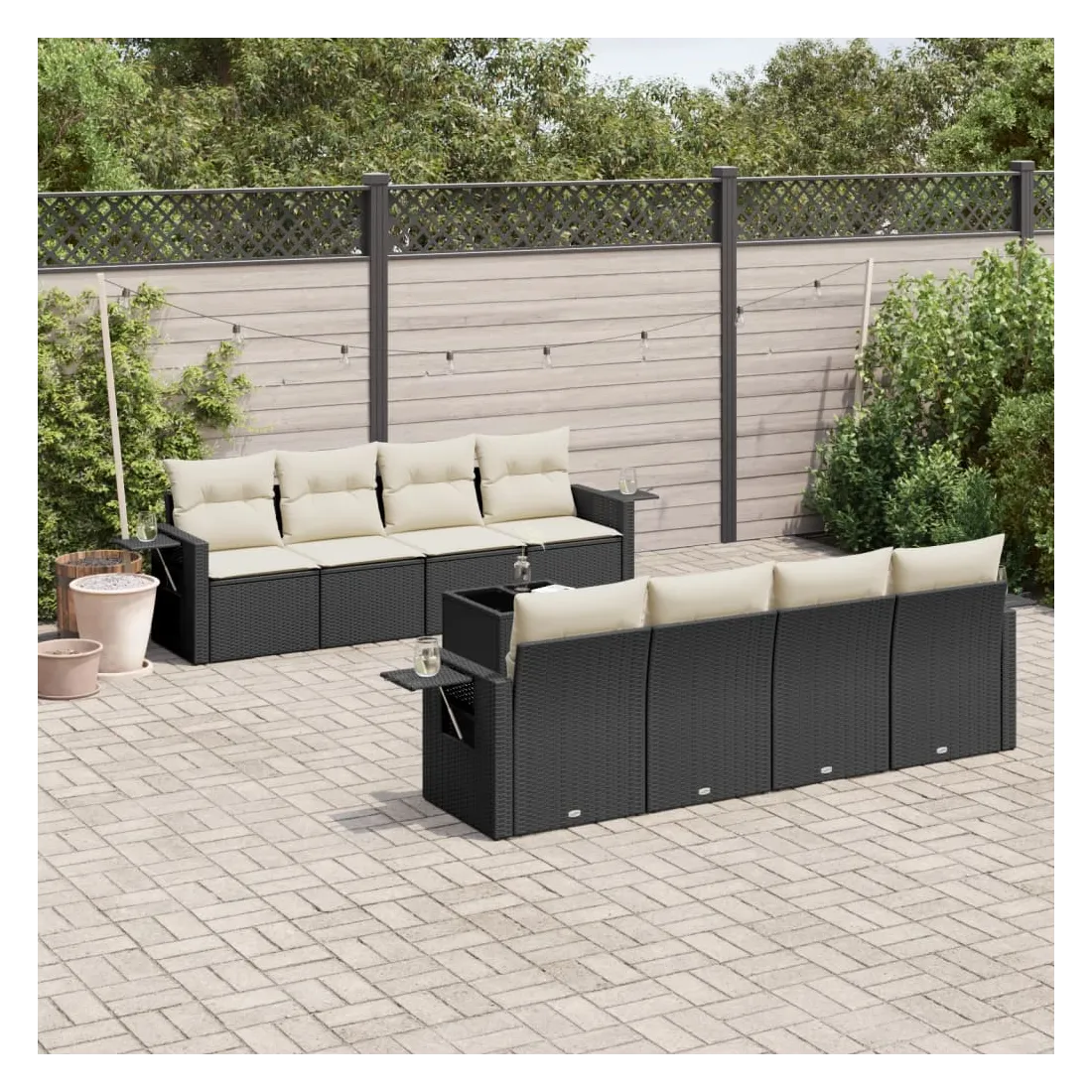Cet ensemble de canapés de jardin est le complément parfait de votre arrière-cour, terrasse ou patio, offrant un espace confortable et accueillant pour discuter avec la famille et les amis ou simplement se détendre et profiter de l'extérieur. Matériau durable : la résine tressée, également connue sous le nom de poly rotin, est un matériau synthétique solide et nécessitant peu d'entretien qui ressemble au rotin naturel. Il est léger, facile à nettoyer et couramment utilisé pour les meubles d'extérieur en raison de sa durabilité et de ses propriétés de résistance aux intempéries.Dessus en verre : le dessus de la table d'extérieur est fabriqué en verre trempé solide et durable, ce qui le rend facile à nettoyer avec un chiffon humide et ajoute une touche d'élégance à votre espace extérieur. Table d'appoint pratique : ce mobilier d'extérieur comprend des tables d'appoint pliables avec un ressort à gaz sur les accoudoirs, offrant des endroits pratiques pour garder vos essentiels à portée de main. Expérience d'assise confortable : ce mobilier d'extérieur, doté de coussins épais, offre une expérience d'assise confortable.Conception modulaire : cet ensemble de meubles d'extérieur a une conception modulaire, ce qui le rend complètement flexible et facile à déplacer, afin que vous puissiez créer un agencement de meubles d'extérieur personnalisé. Bon à savoir :Pour que vos meubles d'extérieur restent beaux, nous vous recommandons de les protéger avec une housse imperméable.