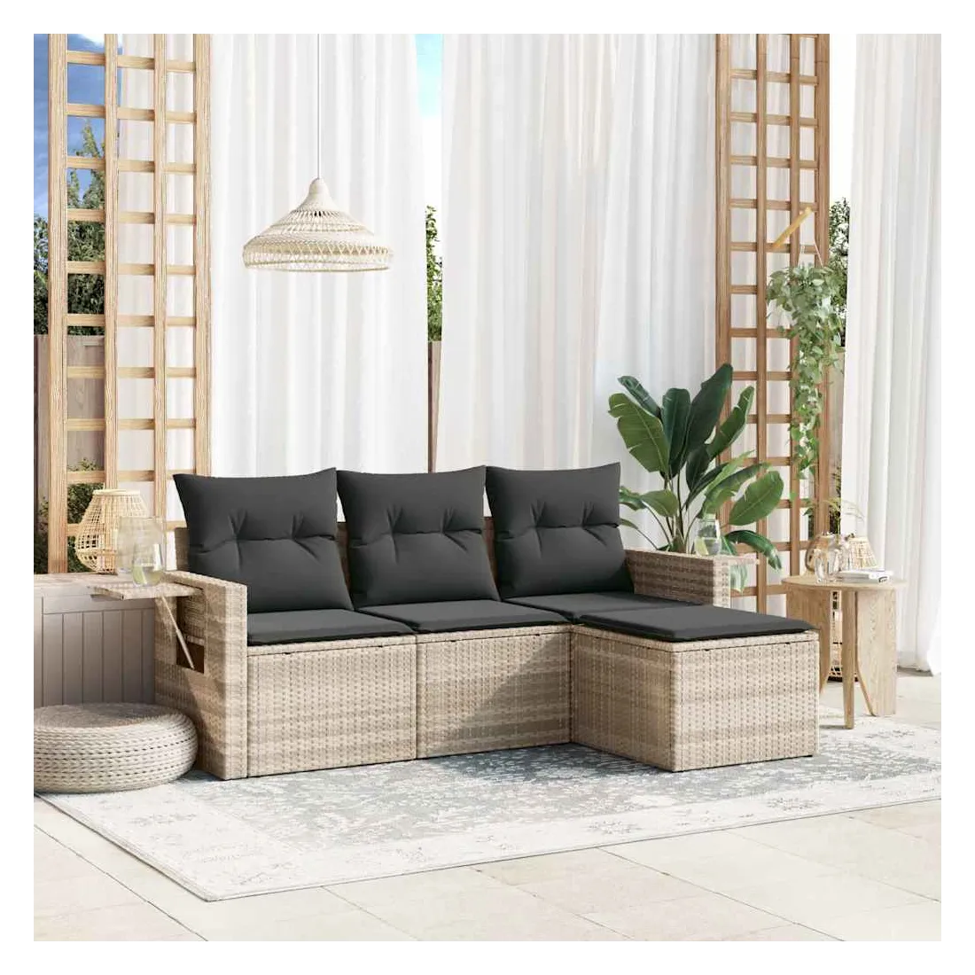 Cet ensemble de canapés de jardin est le complément parfait de votre arrière-cour, terrasse ou patio, offrant un espace confortable et accueillant pour discuter avec la famille et les amis ou simplement se détendre et profiter de l'extérieur. Matériau durable : la résine tressée, également connue sous le nom de poly rotin, est un matériau synthétique solide et nécessitant peu d'entretien qui ressemble au rotin naturel. Il est léger, facile à nettoyer et couramment utilisé pour les meubles d'extérieur en raison de sa durabilité et de ses propriétés de résistance aux intempéries. Table d'appoint pratique : ce mobilier d'extérieur comprend des tables d'appoint pliables avec un ressort à gaz sur les accoudoirs, offrant des endroits pratiques pour garder vos essentiels à portée de main. Expérience d'assise confortable : ce mobilier d'extérieur, doté de coussins épais, offre une expérience d'assise confortable. Housse amovible et lavable : ces coussins de siège sont dotés de housses amovibles pour un lavage et un entretien faciles.Conception modulaire : cet ensemble de meubles d'extérieur a une conception modulaire, ce qui le rend complètement flexible et facile à déplacer, afin que vous puissiez créer un agencement de meubles d'extérieur personnalisé. Bon à savoir :Pour que vos meubles d'extérieur restent beaux, nous vous recommandons de les protéger avec une housse imperméable.