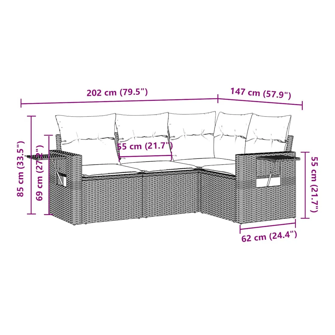 Cet ensemble de canapés de jardin est le complément parfait de votre arrière-cour, terrasse ou patio, offrant un espace confortable et accueillant pour discuter avec la famille et les amis ou simplement se détendre et profiter de l'extérieur. Matériau durable : la résine tressée, également connue sous le nom de poly rotin, est un matériau synthétique solide et nécessitant peu d'entretien qui ressemble au rotin naturel. Il est léger, facile à nettoyer et couramment utilisé pour les meubles d'extérieur en raison de sa durabilité et de ses propriétés de résistance aux intempéries. Table d'appoint pratique : ce mobilier d'extérieur comprend des tables d'appoint pliables avec un ressort à gaz sur les accoudoirs, offrant des endroits pratiques pour garder vos essentiels à portée de main. Expérience d'assise confortable : ce mobilier d'extérieur, doté de coussins épais, offre une expérience d'assise confortable. Housse amovible et lavable : ces coussins de siège sont dotés de housses amovibles pour un lavage et un entretien faciles.Conception modulaire : cet ensemble de meubles d'extérieur a une conception modulaire, ce qui le rend complètement flexible et facile à déplacer, afin que vous puissiez créer un agencement de meubles d'extérieur personnalisé. Bon à savoir :Pour que vos meubles d'extérieur restent beaux, nous vous recommandons de les protéger avec une housse imperméable.