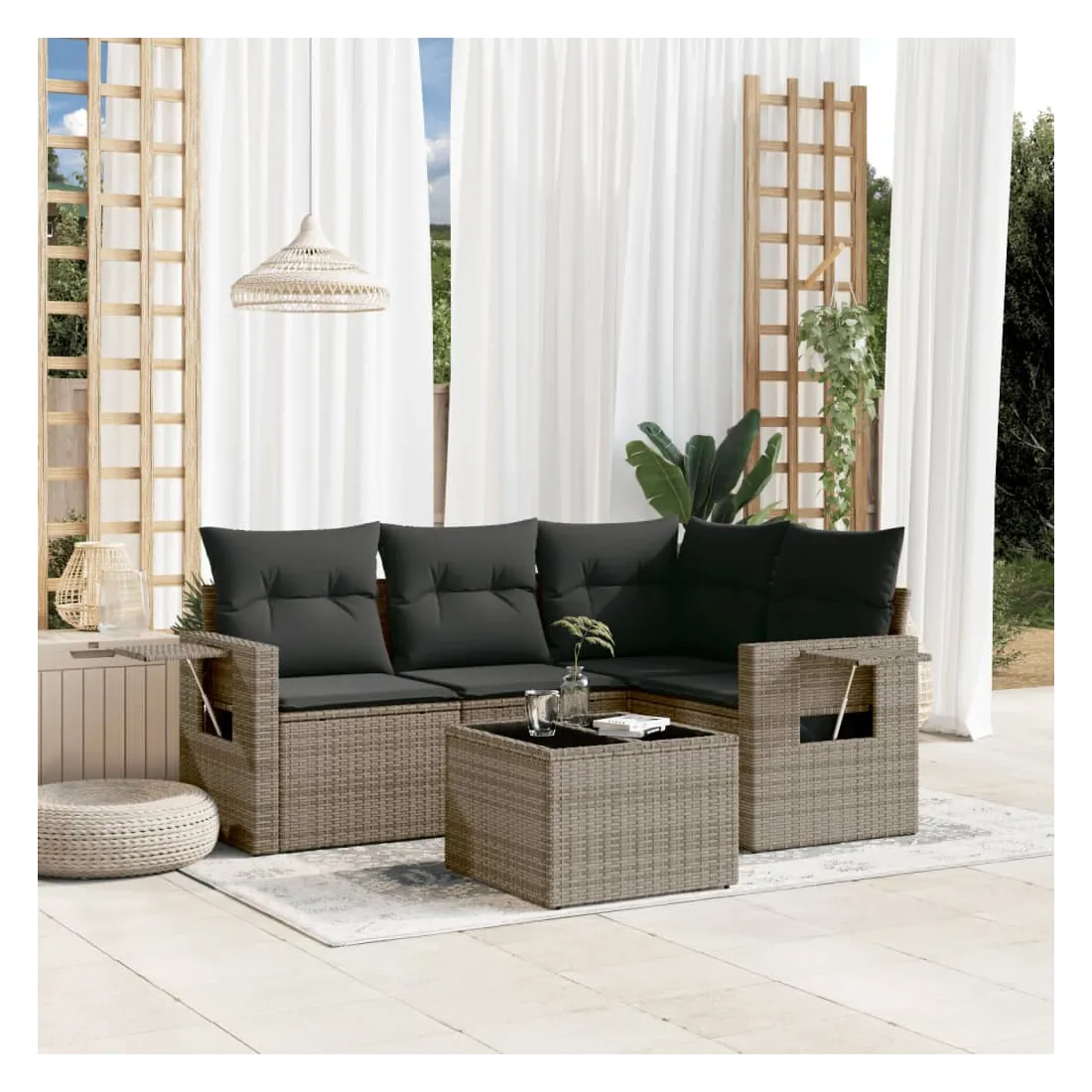 Cet ensemble de canapés de jardin est le complément parfait de votre arrière-cour, terrasse ou patio, offrant un espace confortable et accueillant pour discuter avec la famille et les amis ou simplement se détendre et profiter de l'extérieur. Matériau durable : la résine tressée, également connue sous le nom de poly rotin, est un matériau synthétique solide et nécessitant peu d'entretien qui ressemble au rotin naturel. Il est léger, facile à nettoyer et couramment utilisé pour les meubles d'extérieur en raison de sa durabilité et de ses propriétés de résistance aux intempéries.Dessus en verre : le dessus de la table d'extérieur est fabriqué en verre trempé solide et durable, ce qui le rend facile à nettoyer avec un chiffon humide et ajoute une touche d'élégance à votre espace extérieur. Table d'appoint pratique : ce mobilier d'extérieur comprend des tables d'appoint pliables avec un ressort à gaz sur les accoudoirs, offrant des endroits pratiques pour garder vos essentiels à portée de main. Expérience d'assise confortable : ce mobilier d'extérieur, doté de coussins épais, offre une expérience d'assise confortable.Conception modulaire : cet ensemble de meubles d'extérieur a une conception modulaire, ce qui le rend complètement flexible et facile à déplacer, afin que vous puissiez créer un agencement de meubles d'extérieur personnalisé. Bon à savoir :Pour que vos meubles d'extérieur restent beaux, nous vous recommandons de les protéger avec une housse imperméable.