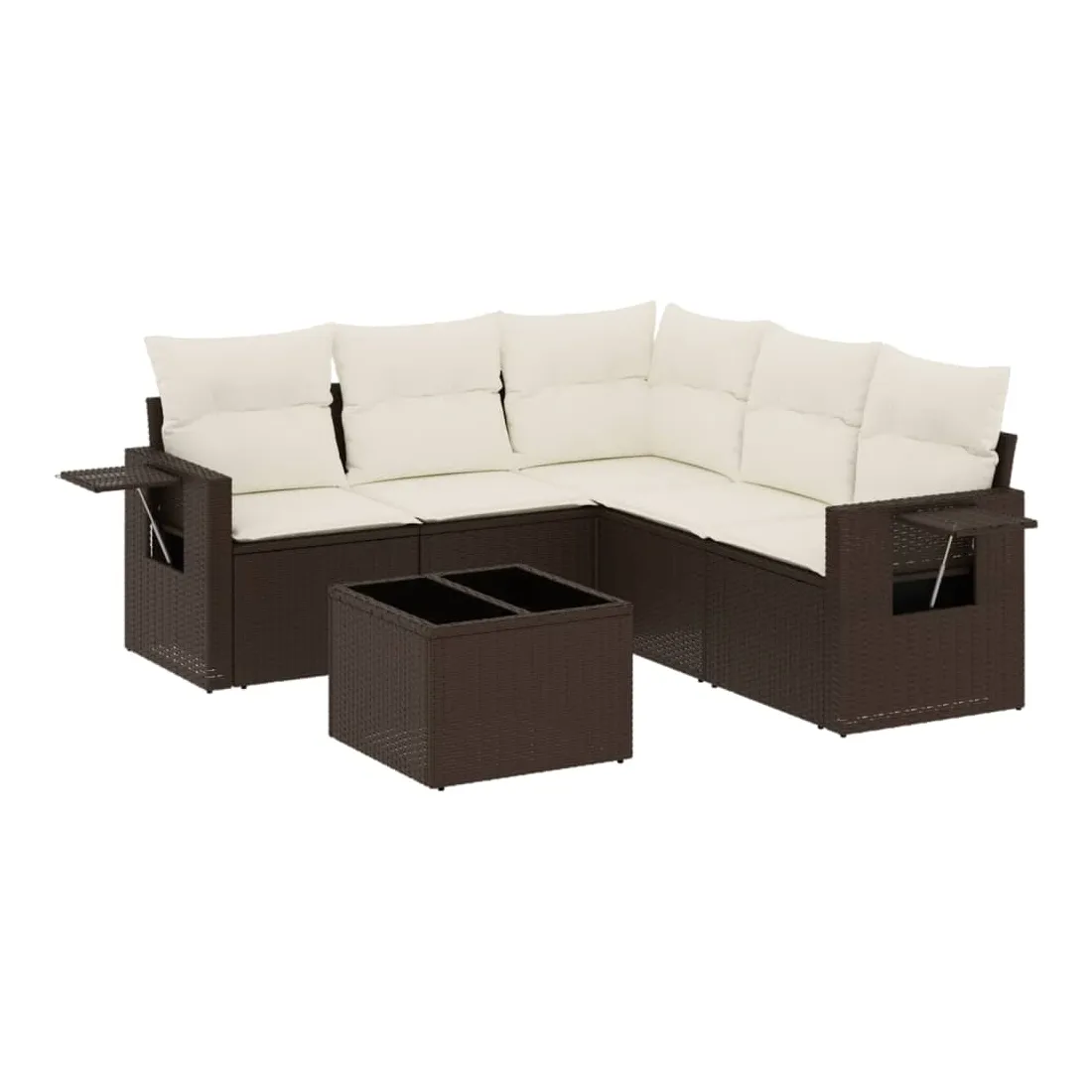 Cet ensemble de canapés de jardin est le complément parfait de votre arrière-cour, terrasse ou patio, offrant un espace confortable et accueillant pour discuter avec la famille et les amis ou simplement se détendre et profiter de l'extérieur. Matériau durable : la résine tressée, également connue sous le nom de poly rotin, est un matériau synthétique solide et nécessitant peu d'entretien qui ressemble au rotin naturel. Il est léger, facile à nettoyer et couramment utilisé pour les meubles d'extérieur en raison de sa durabilité et de ses propriétés de résistance aux intempéries.Dessus en verre : le dessus de la table d'extérieur est fabriqué en verre trempé solide et durable, ce qui le rend facile à nettoyer avec un chiffon humide et ajoute une touche d'élégance à votre espace extérieur. Table d'appoint pratique : ce mobilier d'extérieur comprend des tables d'appoint pliables avec un ressort à gaz sur les accoudoirs, offrant des endroits pratiques pour garder vos essentiels à portée de main. Expérience d'assise confortable : ce mobilier d'extérieur, doté de coussins épais, offre une expérience d'assise confortable.Conception modulaire : cet ensemble de meubles d'extérieur a une conception modulaire, ce qui le rend complètement flexible et facile à déplacer, afin que vous puissiez créer un agencement de meubles d'extérieur personnalisé. Bon à savoir :Pour que vos meubles d'extérieur restent beaux, nous vous recommandons de les protéger avec une housse imperméable.