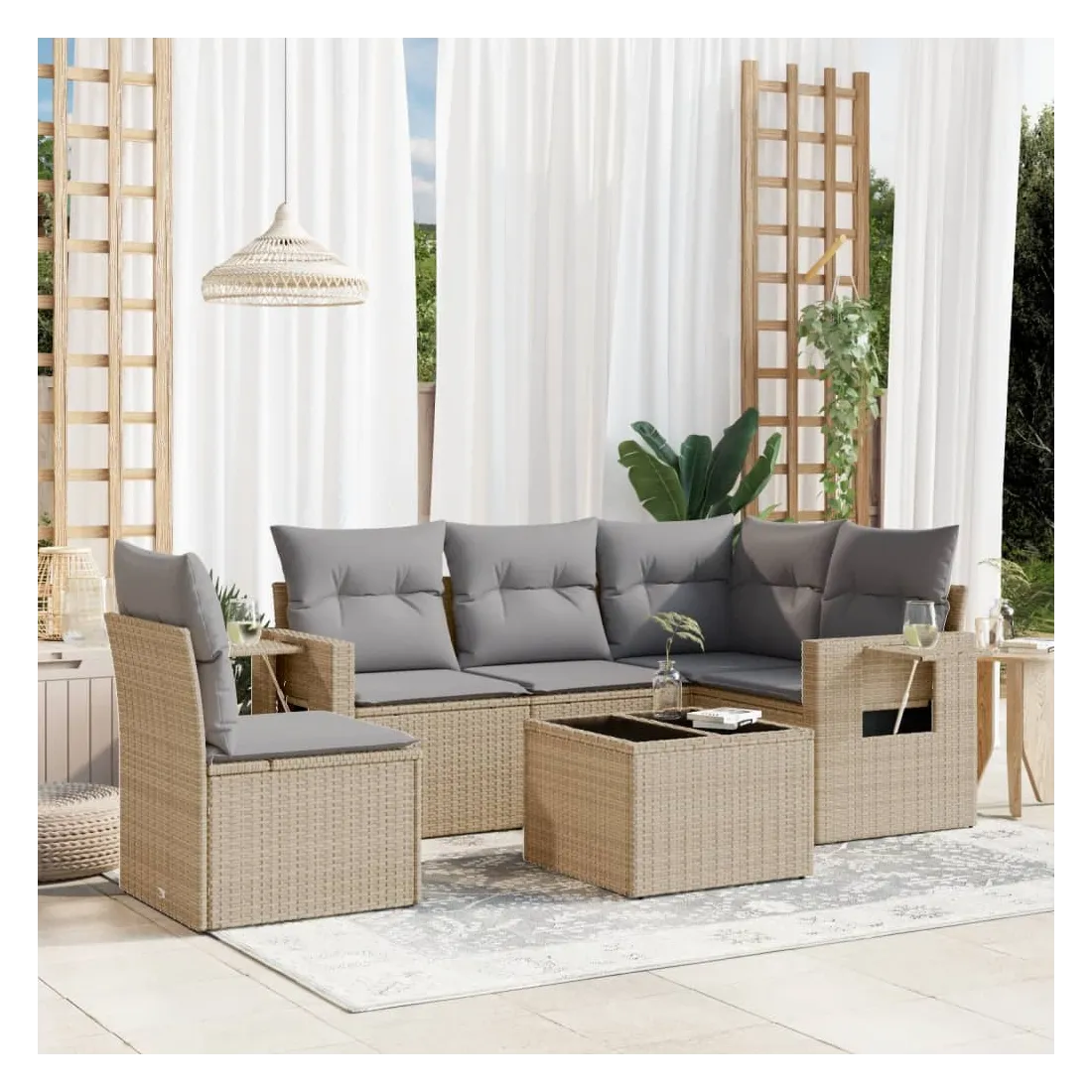 Cet ensemble de canapés de jardin est le complément parfait de votre arrière-cour, terrasse ou patio, offrant un espace confortable et accueillant pour discuter avec la famille et les amis ou simplement se détendre et profiter de l'extérieur. Matériau durable : la résine tressée, également connue sous le nom de poly rotin, est un matériau synthétique solide et nécessitant peu d'entretien qui ressemble au rotin naturel. Il est léger, facile à nettoyer et couramment utilisé pour les meubles d'extérieur en raison de sa durabilité et de ses propriétés de résistance aux intempéries.Dessus en verre : le dessus de la table d'extérieur est fabriqué en verre trempé solide et durable, ce qui le rend facile à nettoyer avec un chiffon humide et ajoute une touche d'élégance à votre espace extérieur. Table d'appoint pratique : ce mobilier d'extérieur comprend des tables d'appoint pliables avec un ressort à gaz sur les accoudoirs, offrant des endroits pratiques pour garder vos essentiels à portée de main. Expérience d'assise confortable : ce mobilier d'extérieur, doté de coussins épais, offre une expérience d'assise confortable.Conception modulaire : cet ensemble de meubles d'extérieur a une conception modulaire, ce qui le rend complètement flexible et facile à déplacer, afin que vous puissiez créer un agencement de meubles d'extérieur personnalisé. Bon à savoir :Pour que vos meubles d'extérieur restent beaux, nous vous recommandons de les protéger avec une housse imperméable.