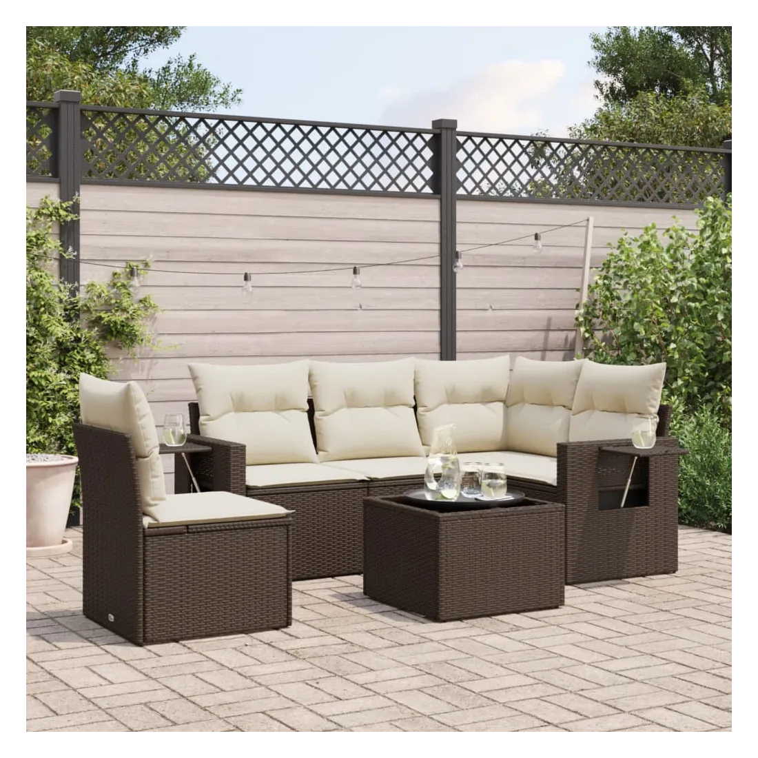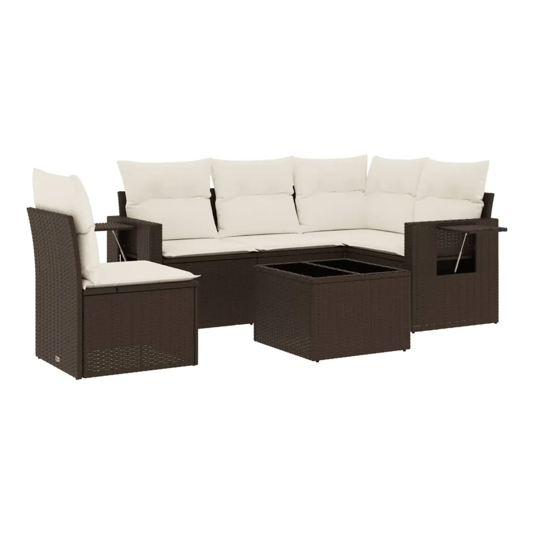 Cet ensemble de canapés de jardin est le complément parfait de votre arrière-cour, terrasse ou patio, offrant un espace confortable et accueillant pour discuter avec la famille et les amis ou simplement se détendre et profiter de l'extérieur. Matériau durable : la résine tressée, également connue sous le nom de poly rotin, est un matériau synthétique solide et nécessitant peu d'entretien qui ressemble au rotin naturel. Il est léger, facile à nettoyer et couramment utilisé pour les meubles d'extérieur en raison de sa durabilité et de ses propriétés de résistance aux intempéries.Dessus en verre : le dessus de la table d'extérieur est fabriqué en verre trempé solide et durable, ce qui le rend facile à nettoyer avec un chiffon humide et ajoute une touche d'élégance à votre espace extérieur. Table d'appoint pratique : ce mobilier d'extérieur comprend des tables d'appoint pliables avec un ressort à gaz sur les accoudoirs, offrant des endroits pratiques pour garder vos essentiels à portée de main. Expérience d'assise confortable : ce mobilier d'extérieur, doté de coussins épais, offre une expérience d'assise confortable.Conception modulaire : cet ensemble de meubles d'extérieur a une conception modulaire, ce qui le rend complètement flexible et facile à déplacer, afin que vous puissiez créer un agencement de meubles d'extérieur personnalisé. Bon à savoir :Pour que vos meubles d'extérieur restent beaux, nous vous recommandons de les protéger avec une housse imperméable.