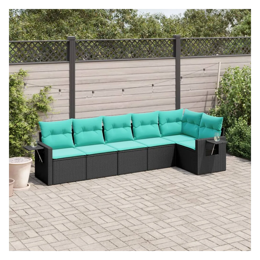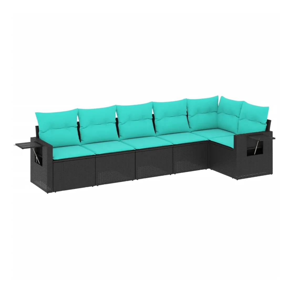 Salon de jardin 6 pcs avec coussins noir résine tressée