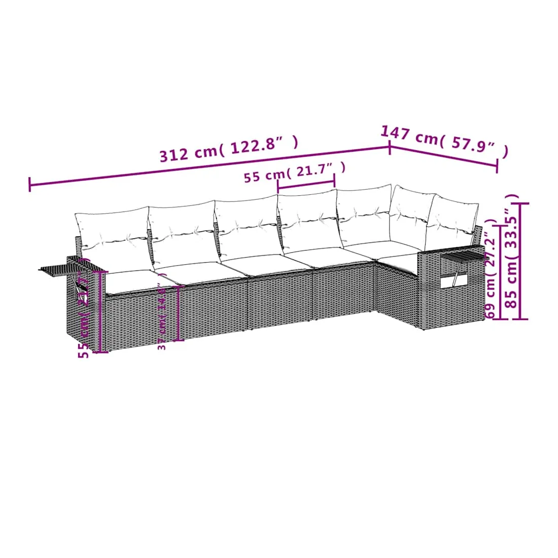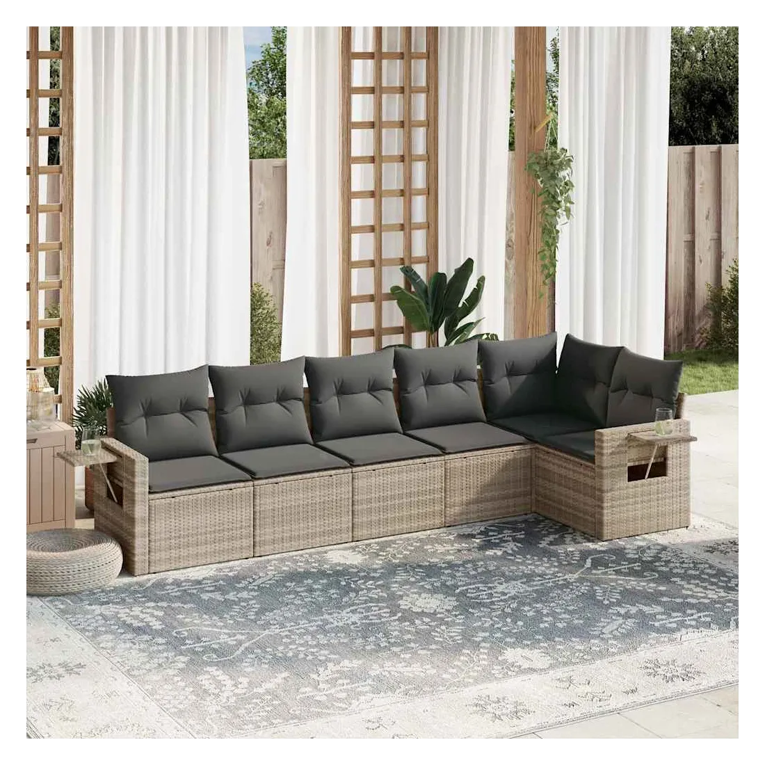 Salon de jardin 6 pcs avec coussins gris clair résine tressée
