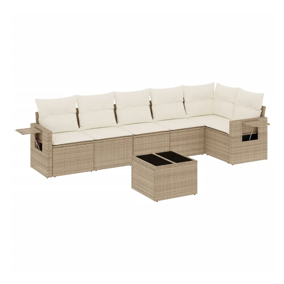 Cet ensemble de canapés de jardin est le complément parfait de votre arrière-cour, terrasse ou patio, offrant un espace confortable et accueillant pour discuter avec la famille et les amis ou simplement se détendre et profiter de l'extérieur. Matériau durable : la résine tressée, également connue sous le nom de poly rotin, est un matériau synthétique solide et nécessitant peu d'entretien qui ressemble au rotin naturel. Il est léger, facile à nettoyer et couramment utilisé pour les meubles d'extérieur en raison de sa durabilité et de ses propriétés de résistance aux intempéries.Dessus en verre : le dessus de la table d'extérieur est fabriqué en verre trempé solide et durable, ce qui le rend facile à nettoyer avec un chiffon humide et ajoute une touche d'élégance à votre espace extérieur. Table d'appoint pratique : ce mobilier d'extérieur comprend des tables d'appoint pliables avec un ressort à gaz sur les accoudoirs, offrant des endroits pratiques pour garder vos essentiels à portée de main. Expérience d'assise confortable : ce mobilier d'extérieur, doté de coussins épais, offre une expérience d'assise confortable.Conception modulaire : cet ensemble de meubles d'extérieur a une conception modulaire, ce qui le rend complètement flexible et facile à déplacer, afin que vous puissiez créer un agencement de meubles d'extérieur personnalisé. Bon à savoir :Pour que vos meubles d'extérieur restent beaux, nous vous recommandons de les protéger avec une housse imperméable.