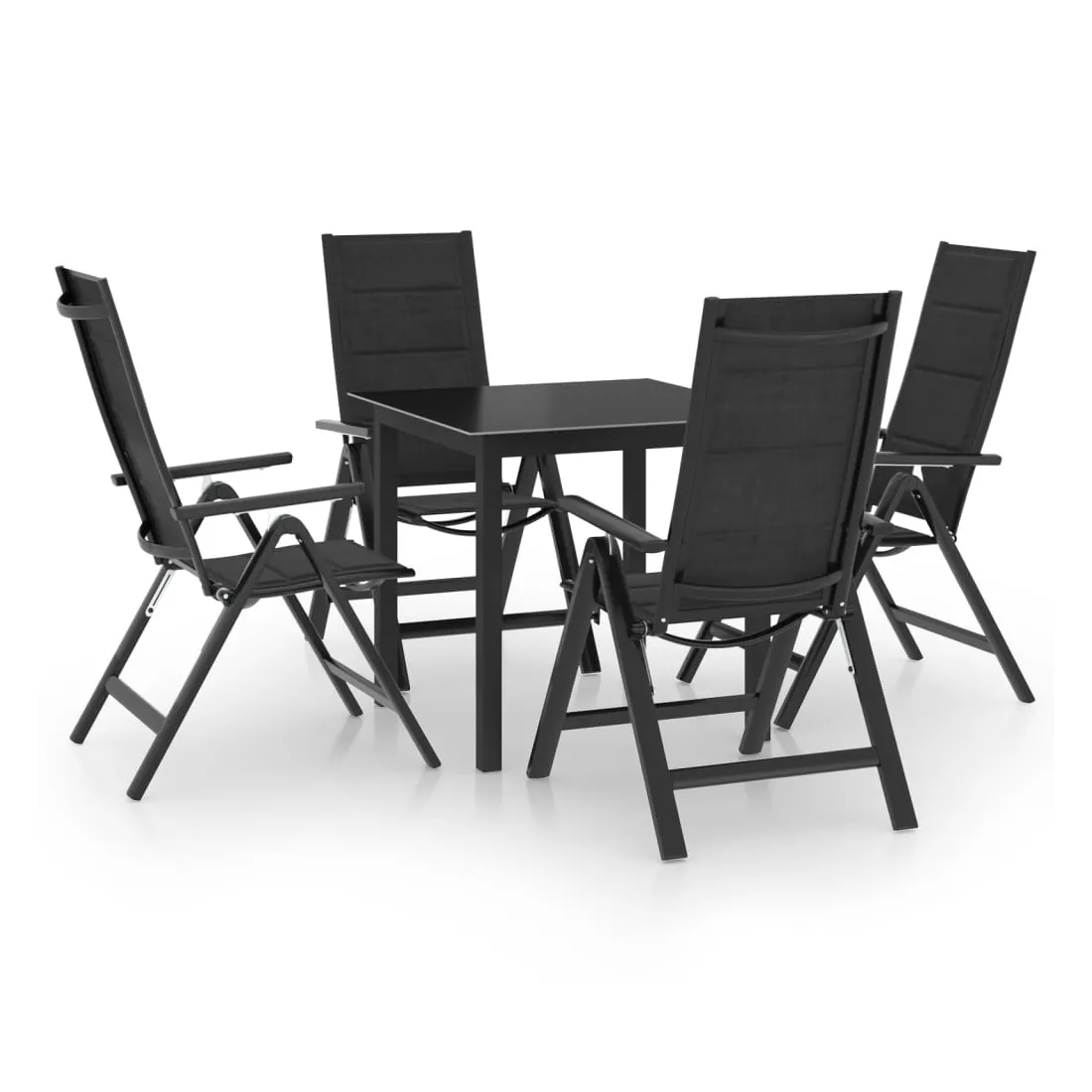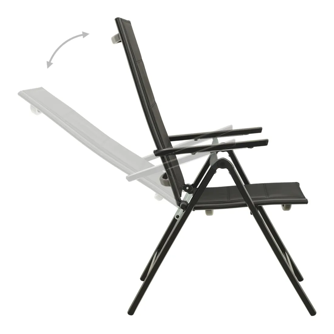 Cet ensemble de salle à manger de jardin à la fois pratique et élégant est parfait pour vous détendre ou dîner dans votre jardin ou sur votre terrasse. Le cadre en aluminium enduit de poudre rend l'ensemble de meubles très robuste et durable. Les chaises de jardin sont dotées de sièges et de dossiers en textilène doux au toucher, réglables sur 7 positions, afin que vous puissiez toujours trouver la position assise la plus confortable. Les fauteuils peuvent être pliés pour gagner de la place lorsqu'ils ne sont pas utilisés. La table est dotée d'un dessus de table en verre, facile à nettoyer et adapté à une utilisation en plein air. Remarque : afin de prolonger la durée de vie des meubles d'extérieur, nous vous recommandons de les protéger avec une housse imperméable.