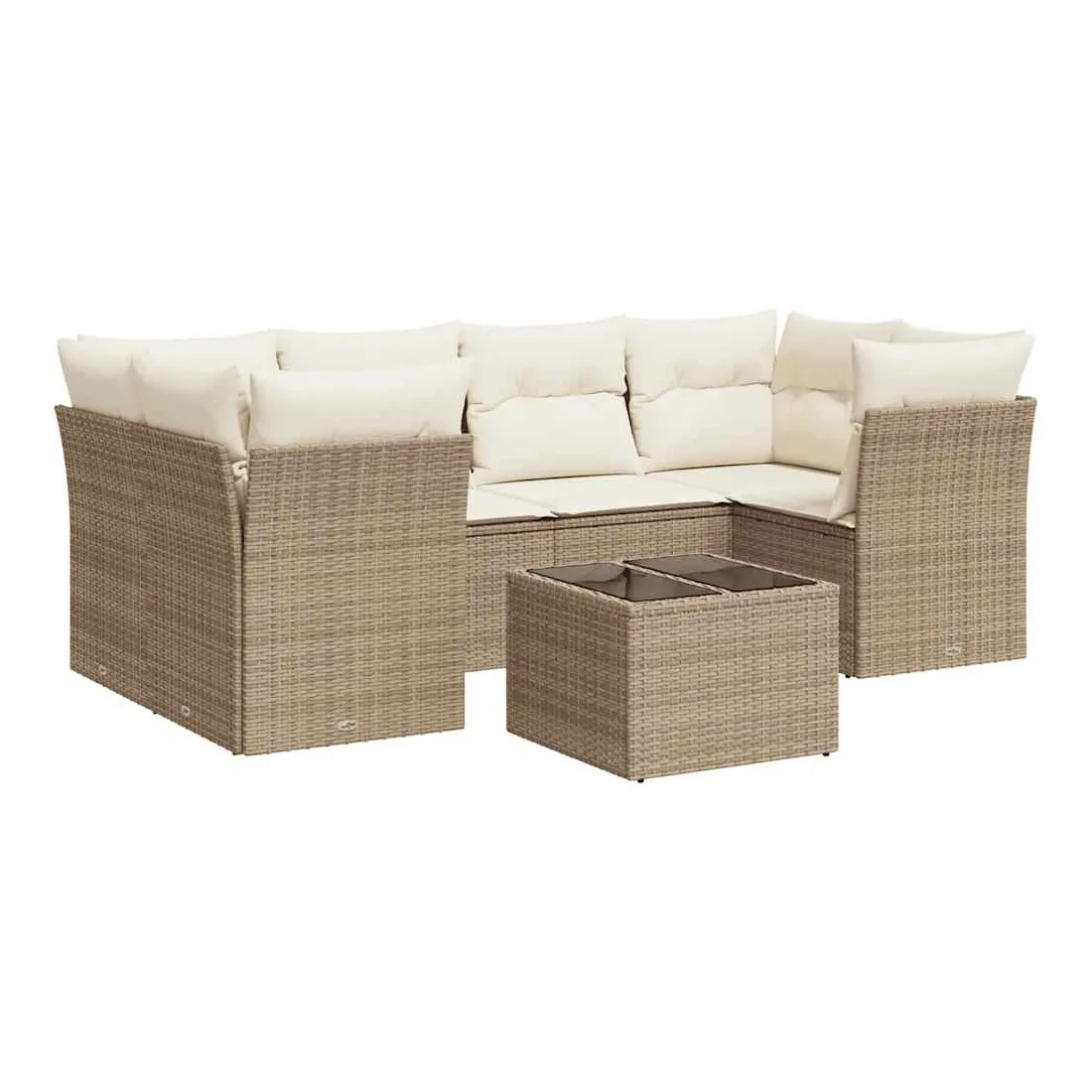 Salon de jardin avec coussins 7 pcs beige résine tressée