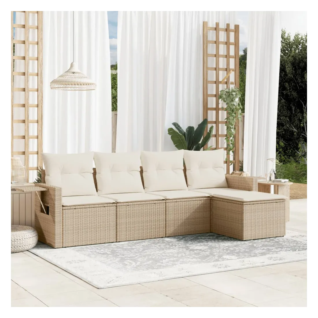 Cet ensemble de canapés de jardin est le complément parfait de votre arrière-cour, terrasse ou patio, offrant un espace confortable et accueillant pour discuter avec la famille et les amis ou simplement se détendre et profiter de l'extérieur. Matériau durable : la résine tressée, également connue sous le nom de poly rotin, est un matériau synthétique solide et nécessitant peu d'entretien qui ressemble au rotin naturel. Il est léger, facile à nettoyer et couramment utilisé pour les meubles d'extérieur en raison de sa durabilité et de ses propriétés de résistance aux intempéries. Table d'appoint pratique : ce mobilier d'extérieur comprend des tables d'appoint pliables avec un ressort à gaz sur les accoudoirs, offrant des endroits pratiques pour garder vos essentiels à portée de main. Expérience d'assise confortable : ce mobilier d'extérieur, doté de coussins épais, offre une expérience d'assise confortable. Housse amovible et lavable : ces coussins de siège sont dotés de housses amovibles pour un lavage et un entretien faciles.Conception modulaire : cet ensemble de meubles d'extérieur a une conception modulaire, ce qui le rend complètement flexible et facile à déplacer, afin que vous puissiez créer un agencement de meubles d'extérieur personnalisé. Bon à savoir :Pour que vos meubles d'extérieur restent beaux, nous vous recommandons de les protéger avec une housse imperméable.