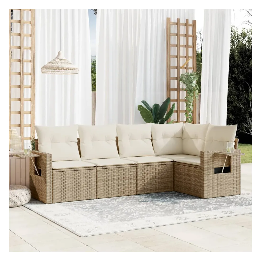 Cet ensemble de canapés de jardin est le complément parfait de votre arrière-cour, terrasse ou patio, offrant un espace confortable et accueillant pour discuter avec la famille et les amis ou simplement se détendre et profiter de l'extérieur. Matériau durable : la résine tressée, également connue sous le nom de poly rotin, est un matériau synthétique solide et nécessitant peu d'entretien qui ressemble au rotin naturel. Il est léger, facile à nettoyer et couramment utilisé pour les meubles d'extérieur en raison de sa durabilité et de ses propriétés de résistance aux intempéries. Table d'appoint pratique : ce mobilier d'extérieur comprend des tables d'appoint pliables avec un ressort à gaz sur les accoudoirs, offrant des endroits pratiques pour garder vos essentiels à portée de main. Expérience d'assise confortable : ce mobilier d'extérieur, doté de coussins épais, offre une expérience d'assise confortable. Housse amovible et lavable : ces coussins de siège sont dotés de housses amovibles pour un lavage et un entretien faciles.Conception modulaire : cet ensemble de meubles d'extérieur a une conception modulaire, ce qui le rend complètement flexible et facile à déplacer, afin que vous puissiez créer un agencement de meubles d'extérieur personnalisé. Bon à savoir :Pour que vos meubles d'extérieur restent beaux, nous vous recommandons de les protéger avec une housse imperméable.