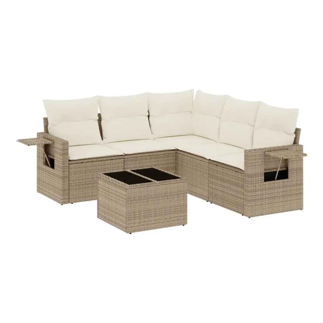 Salon de jardin avec coussins 6 pcs beige résine tressée