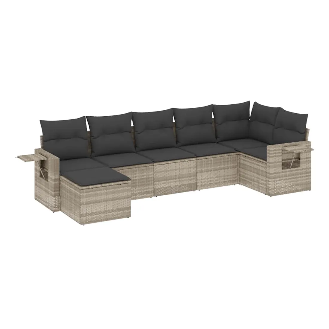 Salon de jardin avec coussins 7 pcs gris clair résine tressée