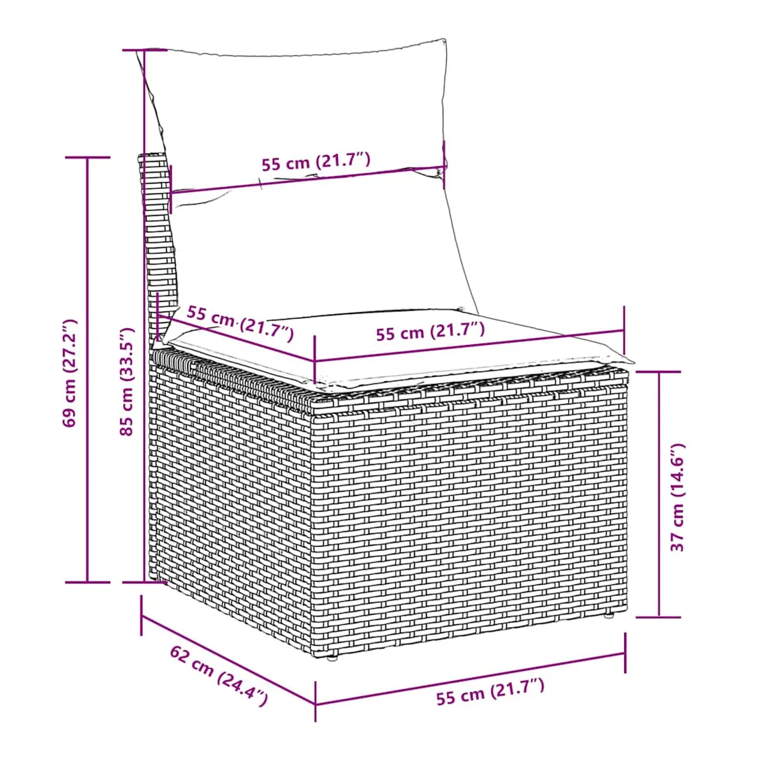 • Dimensions du coussin de siège : 55 x 55 x 3 cm (l x P x é)