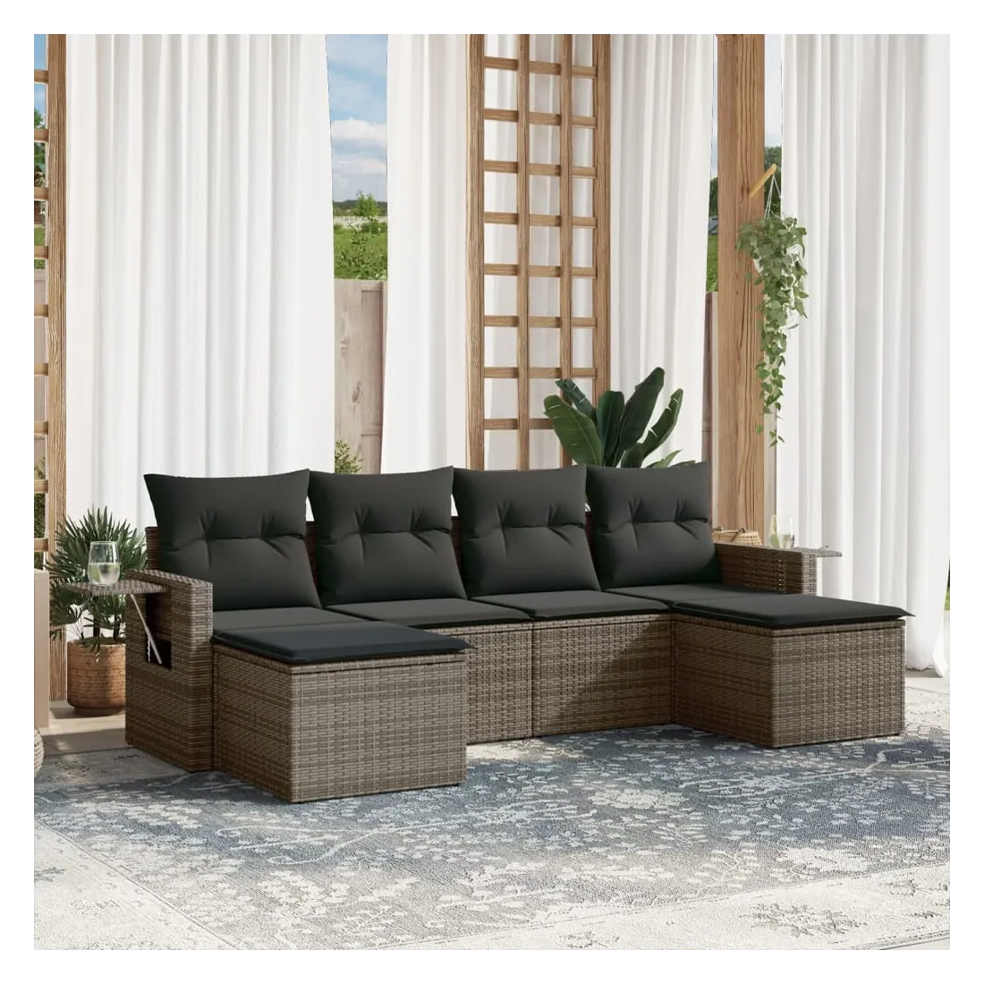 Cet ensemble de canapés de jardin est le complément parfait de votre arrière-cour, terrasse ou patio, offrant un espace confortable et accueillant pour discuter avec la famille et les amis ou simplement se détendre et profiter de l'extérieur. Matériau durable : la résine tressée, également connue sous le nom de poly rotin, est un matériau synthétique solide et nécessitant peu d'entretien qui ressemble au rotin naturel. Il est léger, facile à nettoyer et couramment utilisé pour les meubles d'extérieur en raison de sa durabilité et de ses propriétés de résistance aux intempéries. Table d'appoint pratique : ce mobilier d'extérieur comprend des tables d'appoint pliables avec un ressort à gaz sur les accoudoirs, offrant des endroits pratiques pour garder vos essentiels à portée de main. Expérience d'assise confortable : ce mobilier d'extérieur, doté de coussins épais, offre une expérience d'assise confortable. Housse amovible et lavable : ces coussins de siège sont dotés de housses amovibles pour un lavage et un entretien faciles.Conception modulaire : cet ensemble de meubles d'extérieur a une conception modulaire, ce qui le rend complètement flexible et facile à déplacer, afin que vous puissiez créer un agencement de meubles d'extérieur personnalisé. Bon à savoir :Pour que vos meubles d'extérieur restent beaux, nous vous recommandons de les protéger avec une housse imperméable.