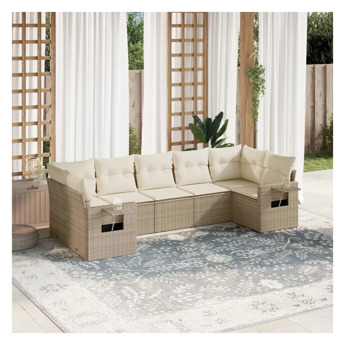Cet ensemble de canapés de jardin est le complément parfait de votre arrière-cour, terrasse ou patio, offrant un espace confortable et accueillant pour discuter avec la famille et les amis ou simplement se détendre et profiter de l'extérieur. Matériau durable : la résine tressée, également connue sous le nom de poly rotin, est un matériau synthétique solide et nécessitant peu d'entretien qui ressemble au rotin naturel. Il est léger, facile à nettoyer et couramment utilisé pour les meubles d'extérieur en raison de sa durabilité et de ses propriétés de résistance aux intempéries. Table d'appoint pratique : ce mobilier d'extérieur comprend des tables d'appoint pliables avec un ressort à gaz sur les accoudoirs, offrant des endroits pratiques pour garder vos essentiels à portée de main. Expérience d'assise confortable : ce mobilier d'extérieur, doté de coussins épais, offre une expérience d'assise confortable. Housse amovible et lavable : ces coussins de siège sont dotés de housses amovibles pour un lavage et un entretien faciles.Conception modulaire : cet ensemble de meubles d'extérieur a une conception modulaire, ce qui le rend complètement flexible et facile à déplacer, afin que vous puissiez créer un agencement de meubles d'extérieur personnalisé. Bon à savoir :Pour que vos meubles d'extérieur restent beaux, nous vous recommandons de les protéger avec une housse imperméable.