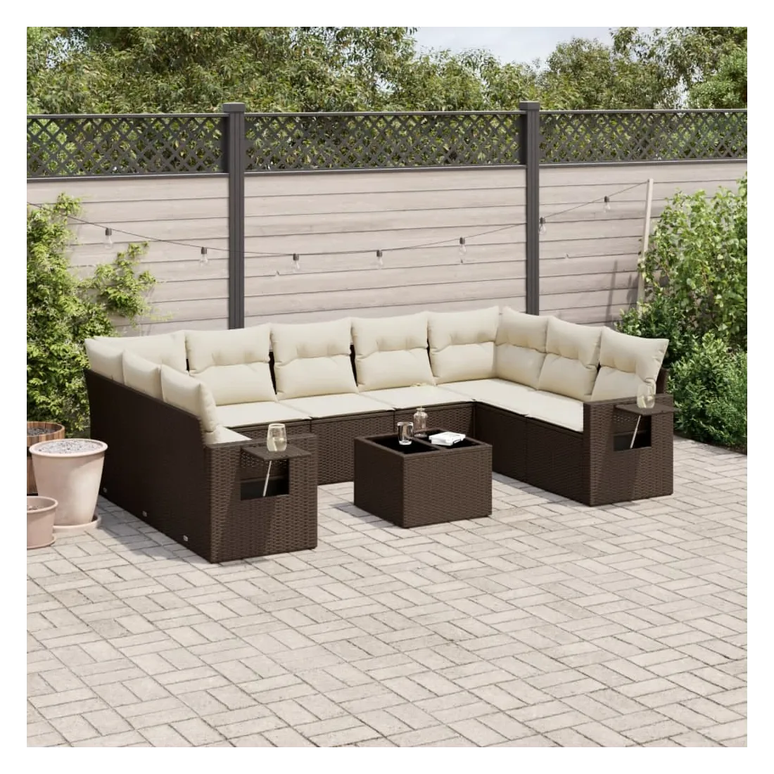 Salon de jardin 10 pcs avec coussins marron résine tressée