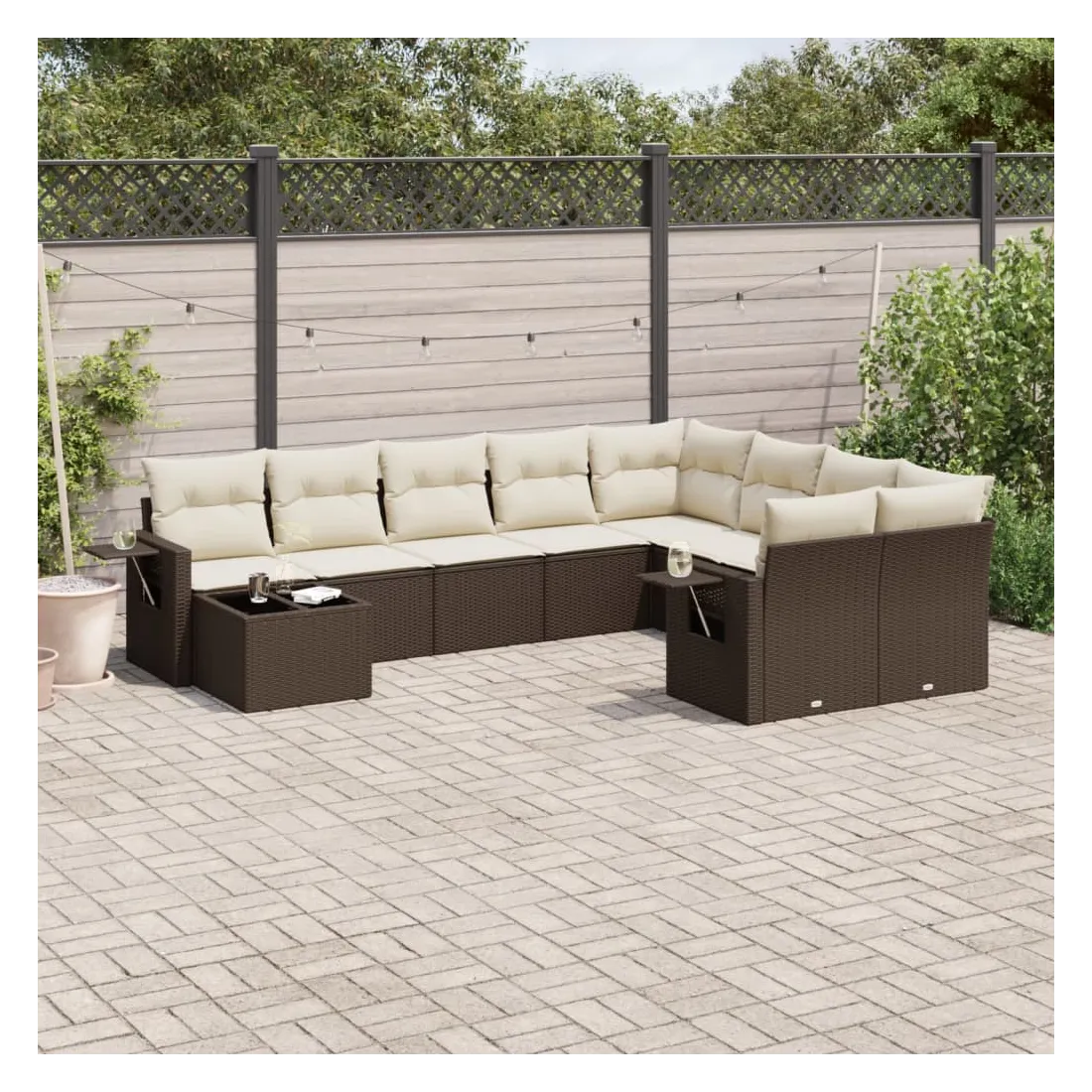 Cet ensemble de canapés de jardin est le complément parfait de votre arrière-cour, terrasse ou patio, offrant un espace confortable et accueillant pour discuter avec la famille et les amis ou simplement se détendre et profiter de l'extérieur. Matériau durable : la résine tressée, également connue sous le nom de poly rotin, est un matériau synthétique solide et nécessitant peu d'entretien qui ressemble au rotin naturel. Il est léger, facile à nettoyer et couramment utilisé pour les meubles d'extérieur en raison de sa durabilité et de ses propriétés de résistance aux intempéries.Dessus en verre : le dessus de la table d'extérieur est fabriqué en verre trempé solide et durable, ce qui le rend facile à nettoyer avec un chiffon humide et ajoute une touche d'élégance à votre espace extérieur. Table d'appoint pratique : ce mobilier d'extérieur comprend des tables d'appoint pliables avec un ressort à gaz sur les accoudoirs, offrant des endroits pratiques pour garder vos essentiels à portée de main. Expérience d'assise confortable : ce mobilier d'extérieur, doté de coussins épais, offre une expérience d'assise confortable.Conception modulaire : cet ensemble de meubles d'extérieur a une conception modulaire, ce qui le rend complètement flexible et facile à déplacer, afin que vous puissiez créer un agencement de meubles d'extérieur personnalisé. Bon à savoir :Pour que vos meubles d'extérieur restent beaux, nous vous recommandons de les protéger avec une housse imperméable.