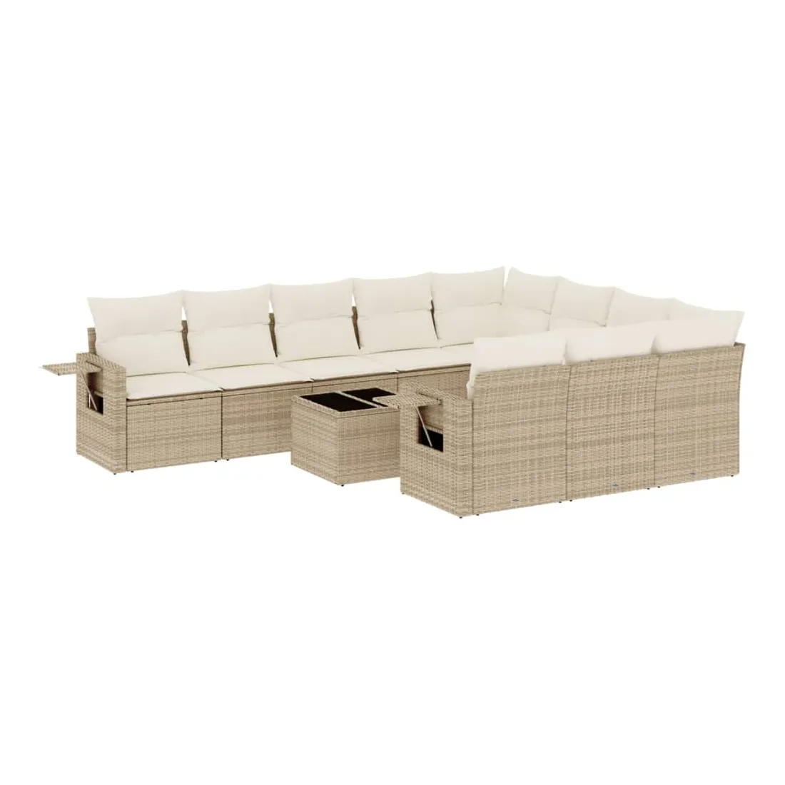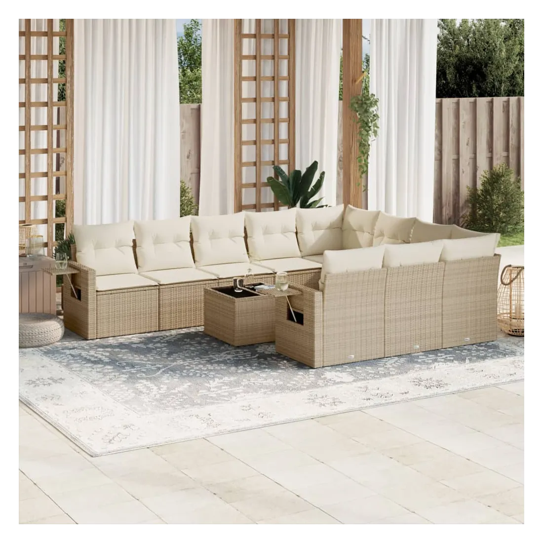 Salon de jardin 11 pcs avec coussins beige résine tressée