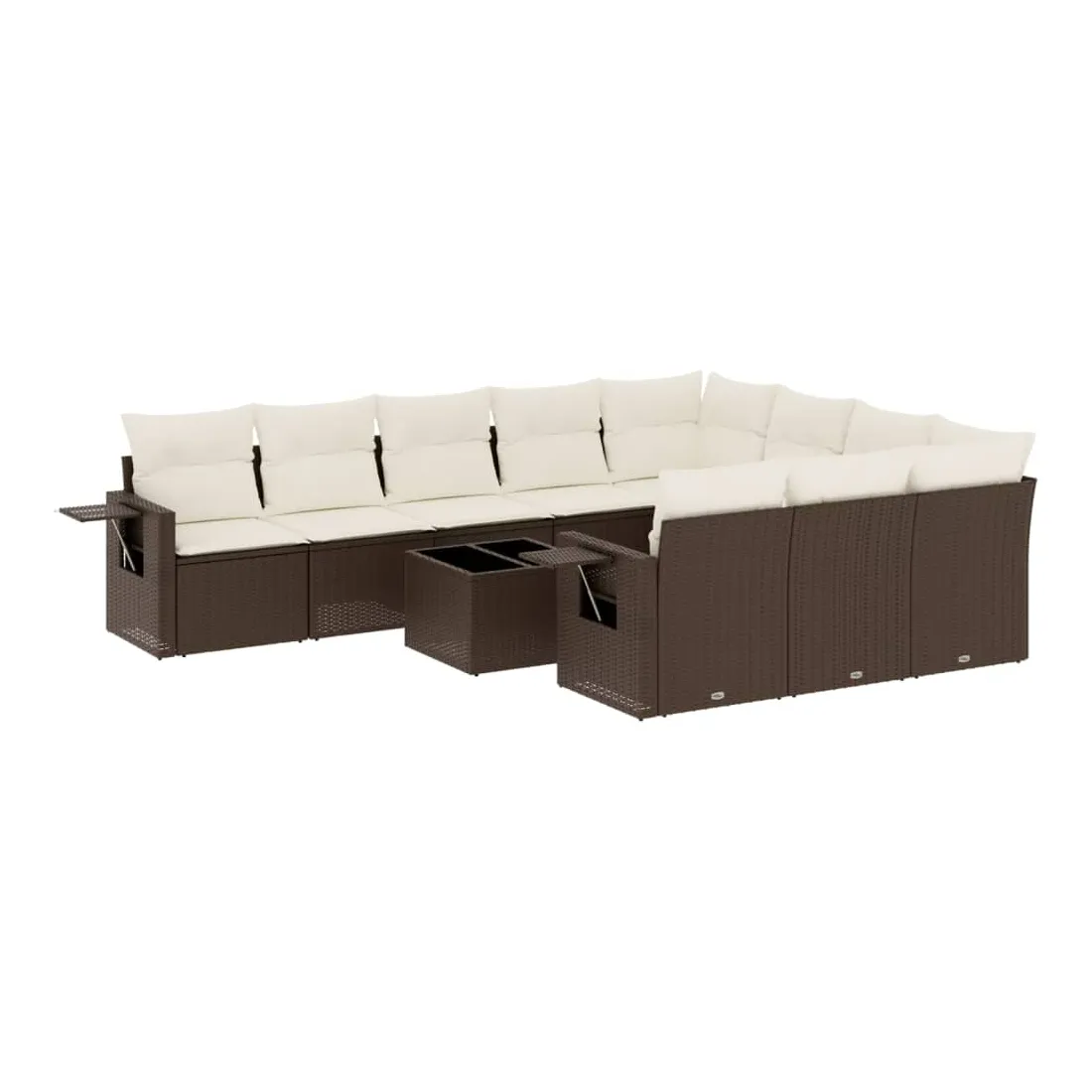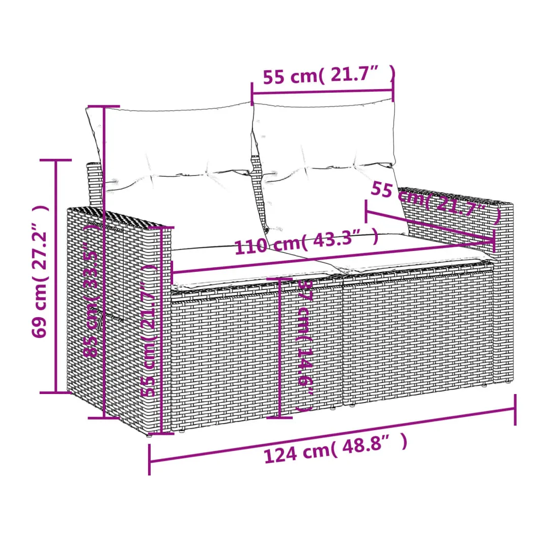 Cet ensemble de canapés de jardin est le complément parfait de votre arrière-cour, terrasse ou patio, offrant un espace confortable et accueillant pour discuter avec la famille et les amis ou simplement se détendre et profiter de l'extérieur. Matériau durable : la résine tressée, également connue sous le nom de poly rotin, est un matériau synthétique solide et nécessitant peu d'entretien qui ressemble au rotin naturel. Il est léger, facile à nettoyer et couramment utilisé pour les meubles d'extérieur en raison de sa durabilité et de ses propriétés de résistance aux intempéries.Dessus en verre : le dessus de la table d'extérieur est fabriqué en verre trempé solide et durable, ce qui le rend facile à nettoyer avec un chiffon humide et ajoute une touche d'élégance à votre espace extérieur. Table d'appoint pratique : ce mobilier d'extérieur comprend des tables d'appoint pliables avec un ressort à gaz sur les accoudoirs, offrant des endroits pratiques pour garder vos essentiels à portée de main. Expérience d'assise confortable : ce mobilier d'extérieur, doté de coussins épais, offre une expérience d'assise confortable.Conception modulaire : cet ensemble de meubles d'extérieur a une conception modulaire, ce qui le rend complètement flexible et facile à déplacer, afin que vous puissiez créer un agencement de meubles d'extérieur personnalisé. Bon à savoir :Pour que vos meubles d'extérieur restent beaux, nous vous recommandons de les protéger avec une housse imperméable.