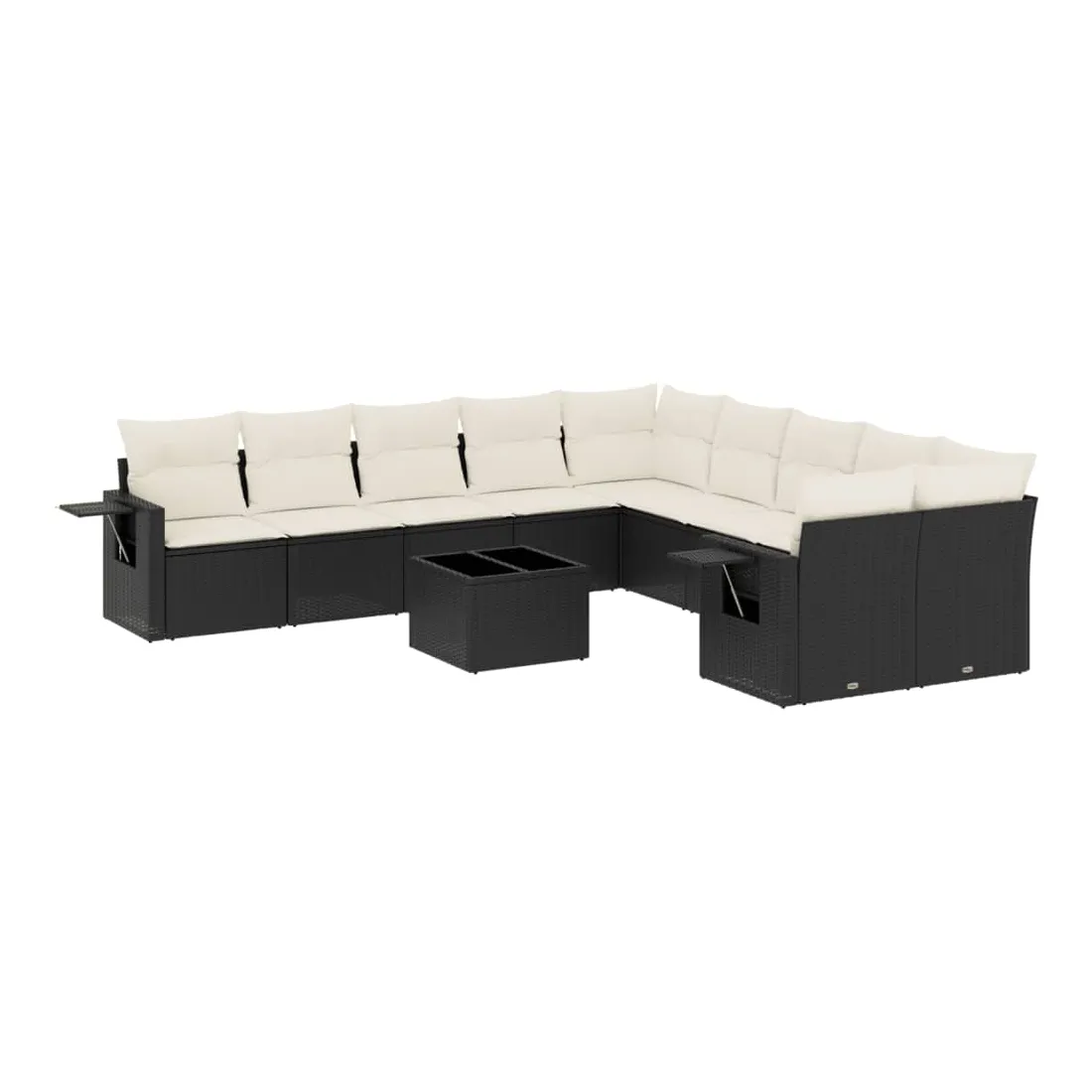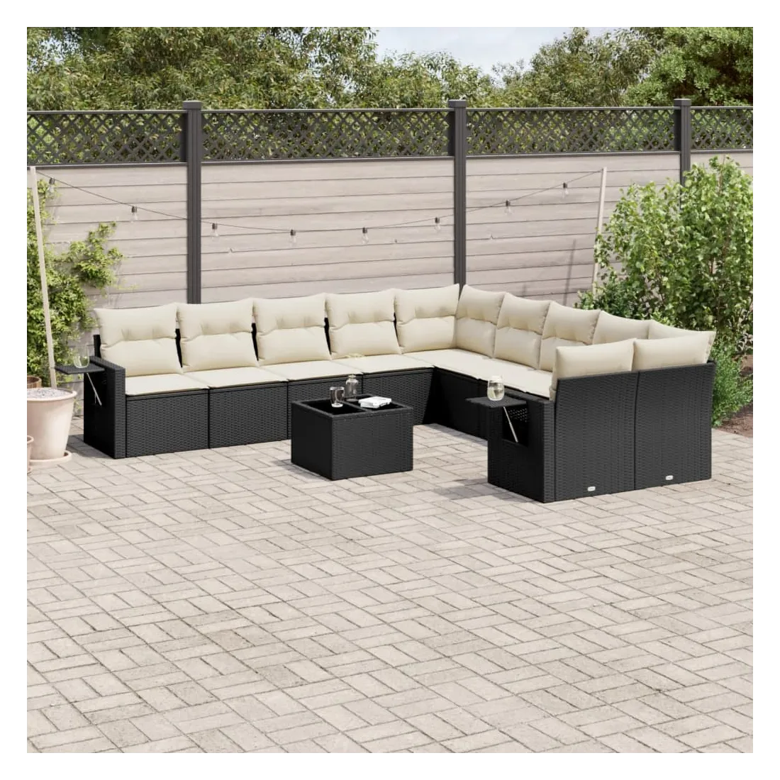 Cet ensemble de canapés de jardin est le complément parfait de votre arrière-cour, terrasse ou patio, offrant un espace confortable et accueillant pour discuter avec la famille et les amis ou simplement se détendre et profiter de l'extérieur. Matériau durable : la résine tressée, également connue sous le nom de poly rotin, est un matériau synthétique solide et nécessitant peu d'entretien qui ressemble au rotin naturel. Il est léger, facile à nettoyer et couramment utilisé pour les meubles d'extérieur en raison de sa durabilité et de ses propriétés de résistance aux intempéries.Dessus en verre : le dessus de la table d'extérieur est fabriqué en verre trempé solide et durable, ce qui le rend facile à nettoyer avec un chiffon humide et ajoute une touche d'élégance à votre espace extérieur. Table d'appoint pratique : ce mobilier d'extérieur comprend des tables d'appoint pliables avec un ressort à gaz sur les accoudoirs, offrant des endroits pratiques pour garder vos essentiels à portée de main. Expérience d'assise confortable : ce mobilier d'extérieur, doté de coussins épais, offre une expérience d'assise confortable.Conception modulaire : cet ensemble de meubles d'extérieur a une conception modulaire, ce qui le rend complètement flexible et facile à déplacer, afin que vous puissiez créer un agencement de meubles d'extérieur personnalisé. Bon à savoir :Pour que vos meubles d'extérieur restent beaux, nous vous recommandons de les protéger avec une housse imperméable.