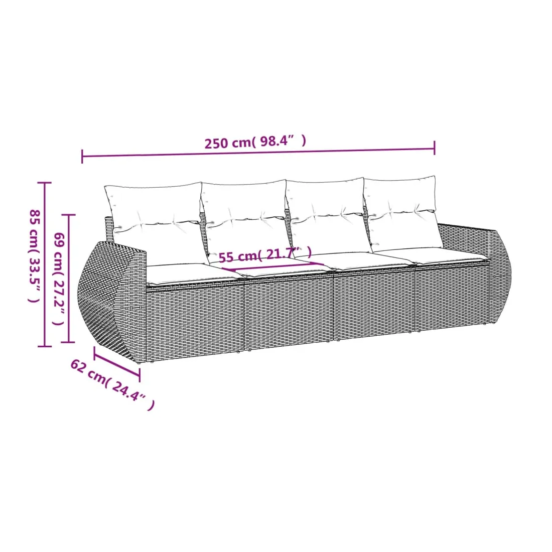 Cet ensemble de canapés de jardin est le complément parfait de votre arrière-cour, terrasse ou patio, offrant un espace confortable et accueillant pour discuter avec la famille et les amis ou simplement se détendre et profiter de l'extérieur. Matériau durable : la résine tressée, également connue sous le nom de poly rotin, est un matériau synthétique solide et nécessitant peu d'entretien qui ressemble au rotin naturel. Il est léger, facile à nettoyer et couramment utilisé pour les meubles d'extérieur en raison de sa durabilité et de ses propriétés de résistance aux intempéries.Expérience d'assise confortable : ce mobilier d'extérieur, doté de coussins épais, offre une expérience d'assise confortable. Housse amovible et lavable : ces coussins de siège sont dotés de housses amovibles pour un lavage et un entretien faciles.Conception modulaire : cet ensemble de meubles d'extérieur a une conception modulaire, ce qui le rend complètement flexible et facile à déplacer, afin que vous puissiez créer un agencement de meubles d'extérieur personnalisé.Cadre robuste et stable : le cadre en acier enduit de poudre assure la solidité et la stabilité du meuble de jardin pour une utilisation quotidienne à l'extérieur. Bon à savoir :Pour que vos meubles d'extérieur restent beaux, nous vous recommandons de les protéger avec une housse imperméable.