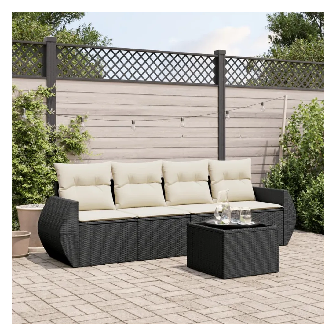 Cet ensemble de canapés de jardin est le complément parfait de votre arrière-cour, terrasse ou patio, offrant un espace confortable et accueillant pour discuter avec la famille et les amis ou simplement se détendre et profiter de l'extérieur. Matériau durable : la résine tressée, également connue sous le nom de poly rotin, est un matériau synthétique solide et nécessitant peu d'entretien qui ressemble au rotin naturel. Il est léger, facile à nettoyer et couramment utilisé pour les meubles d'extérieur en raison de sa durabilité et de ses propriétés de résistance aux intempéries.Dessus en verre : le dessus de la table d'extérieur est fabriqué en verre trempé solide et durable, ce qui le rend facile à nettoyer avec un chiffon humide et ajoute une touche d'élégance à votre espace extérieur. Expérience d'assise confortable : ce mobilier d'extérieur, doté de coussins épais, offre une expérience d'assise confortable. Housse amovible et lavable : ces coussins de siège sont dotés de housses amovibles pour un lavage et un entretien faciles.Conception modulaire : cet ensemble de meubles d'extérieur a une conception modulaire, ce qui le rend complètement flexible et facile à déplacer, afin que vous puissiez créer un agencement de meubles d'extérieur personnalisé. Bon à savoir :Pour que vos meubles d'extérieur restent beaux, nous vous recommandons de les protéger avec une housse imperméable.