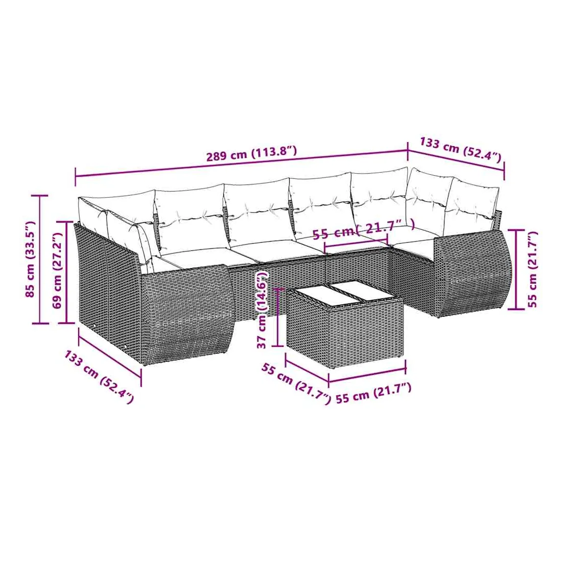 - Dimensions : 55 x 55 x 37 cm (L x l x H)