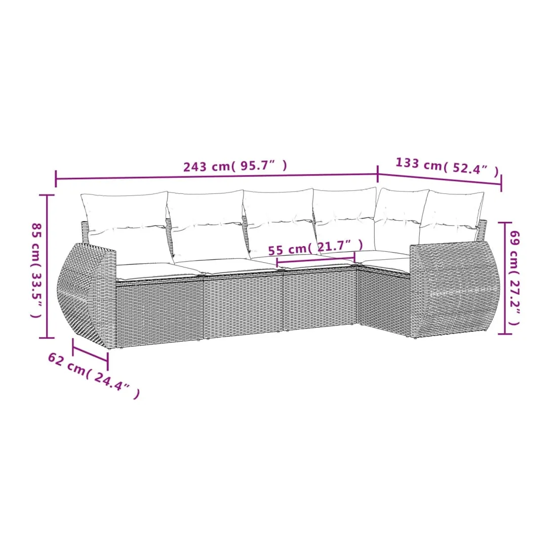 - Dimensions du coussin de dossier : 55 x 45 x 13 cm (L x l x é)