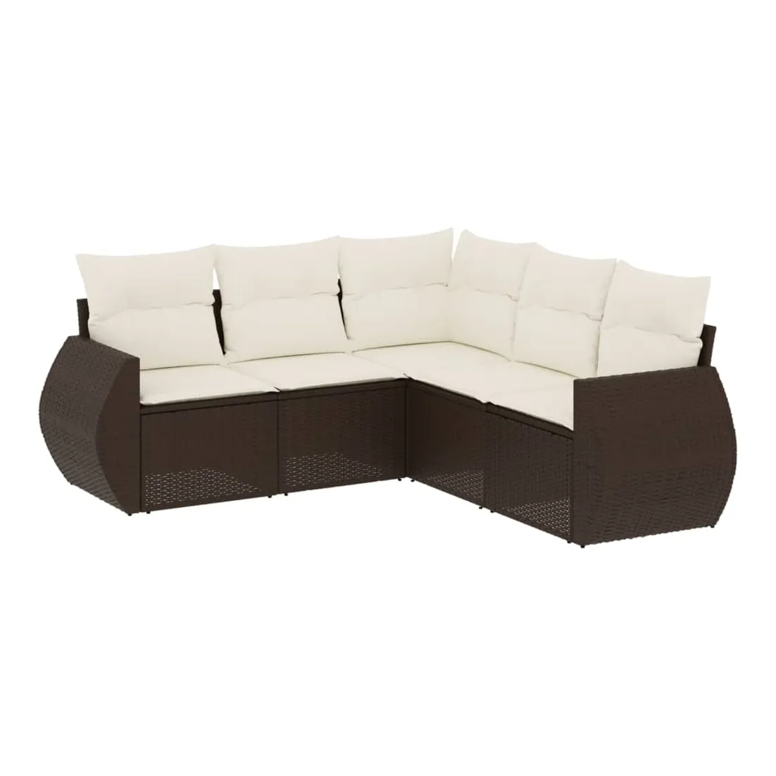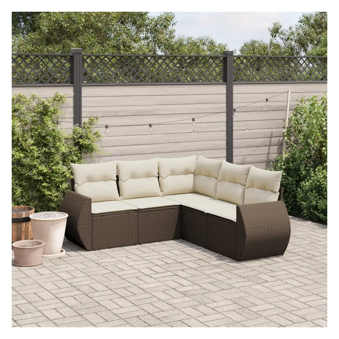 Salon de jardin avec coussins 5 pcs marron résine tressée