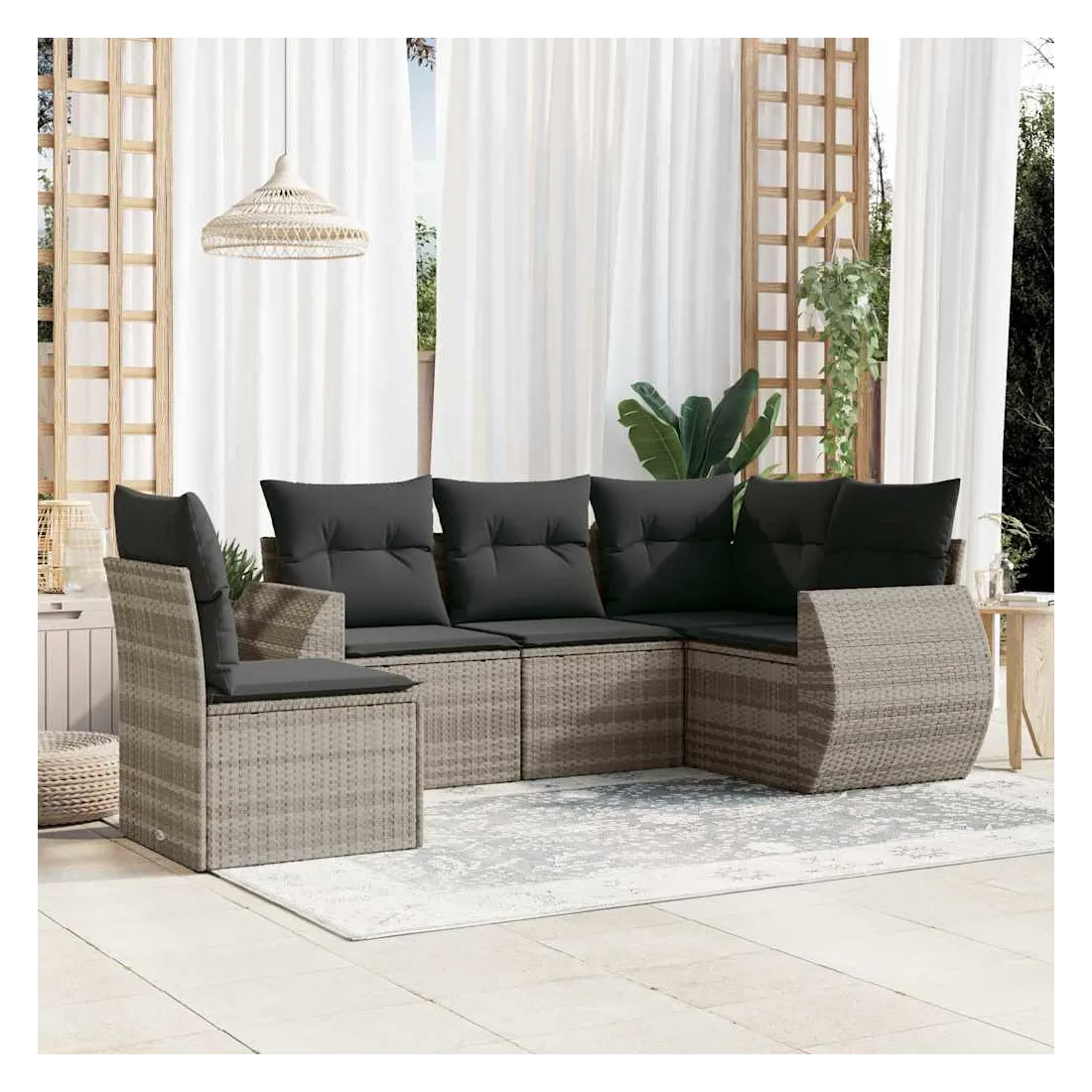 Salon de jardin 5 pcs avec coussins gris clair résine tressée