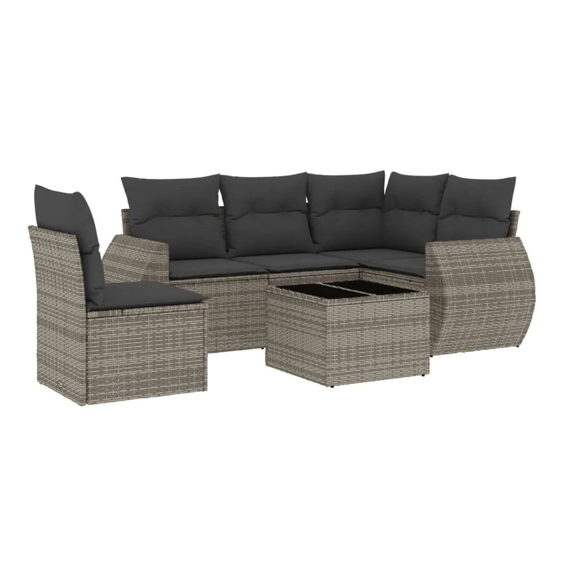 Salon de jardin 6 pcs avec coussins gris résine tressée