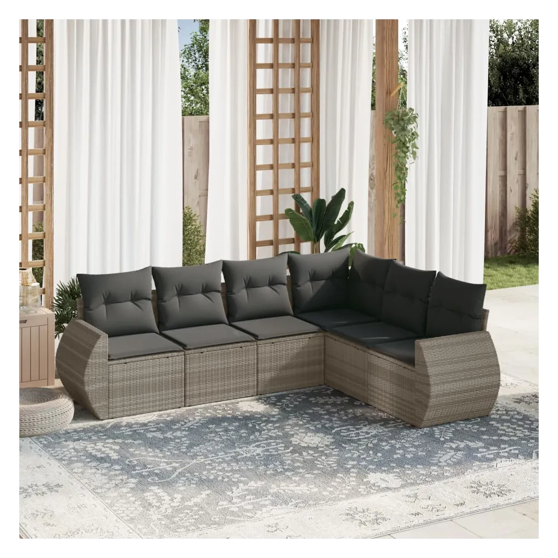 Cet ensemble de canapés de jardin est le complément parfait de votre arrière-cour, terrasse ou patio, offrant un espace confortable et accueillant pour discuter avec la famille et les amis ou simplement se détendre et profiter de l'extérieur. Matériau durable : la résine tressée, également connue sous le nom de poly rotin, est un matériau synthétique solide et nécessitant peu d'entretien qui ressemble au rotin naturel. Il est léger, facile à nettoyer et couramment utilisé pour les meubles d'extérieur en raison de sa durabilité et de ses propriétés de résistance aux intempéries. Expérience d'assise confortable : ce mobilier d'extérieur, doté de coussins épais, offre une expérience d'assise confortable.Housse amovible et lavable : ces coussins de siège sont dotés de housses amovibles pour un lavage et un entretien faciles.Conception modulaire : cet ensemble de meubles d'extérieur a une conception modulaire, ce qui le rend complètement flexible et facile à déplacer, afin que vous puissiez créer un agencement de meubles d'extérieur personnalisé.Cadre robuste et stable : le cadre en acier enduit de poudre assure la solidité et la stabilité du meuble de jardin pour une utilisation quotidienne à l'extérieur. Bon à savoir :Pour que vos meubles d'extérieur restent beaux, nous vous recommandons de les protéger avec une housse imperméable.
