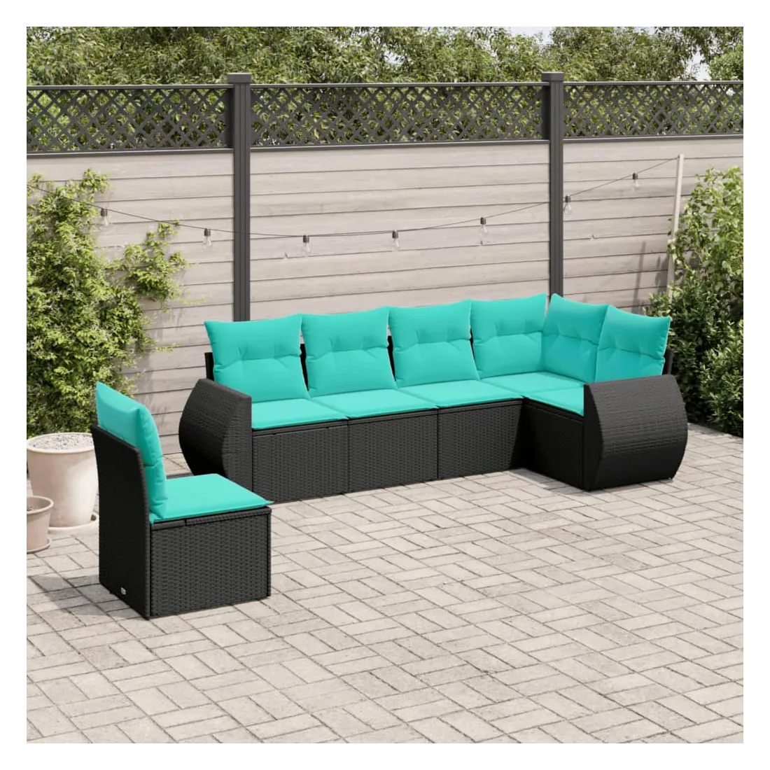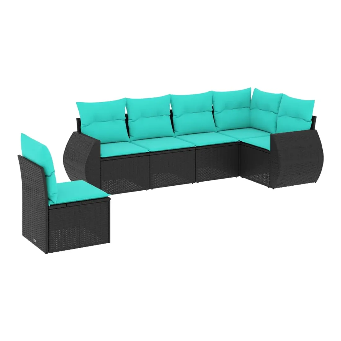 Salon de jardin 6 pcs avec coussins noir résine tressée