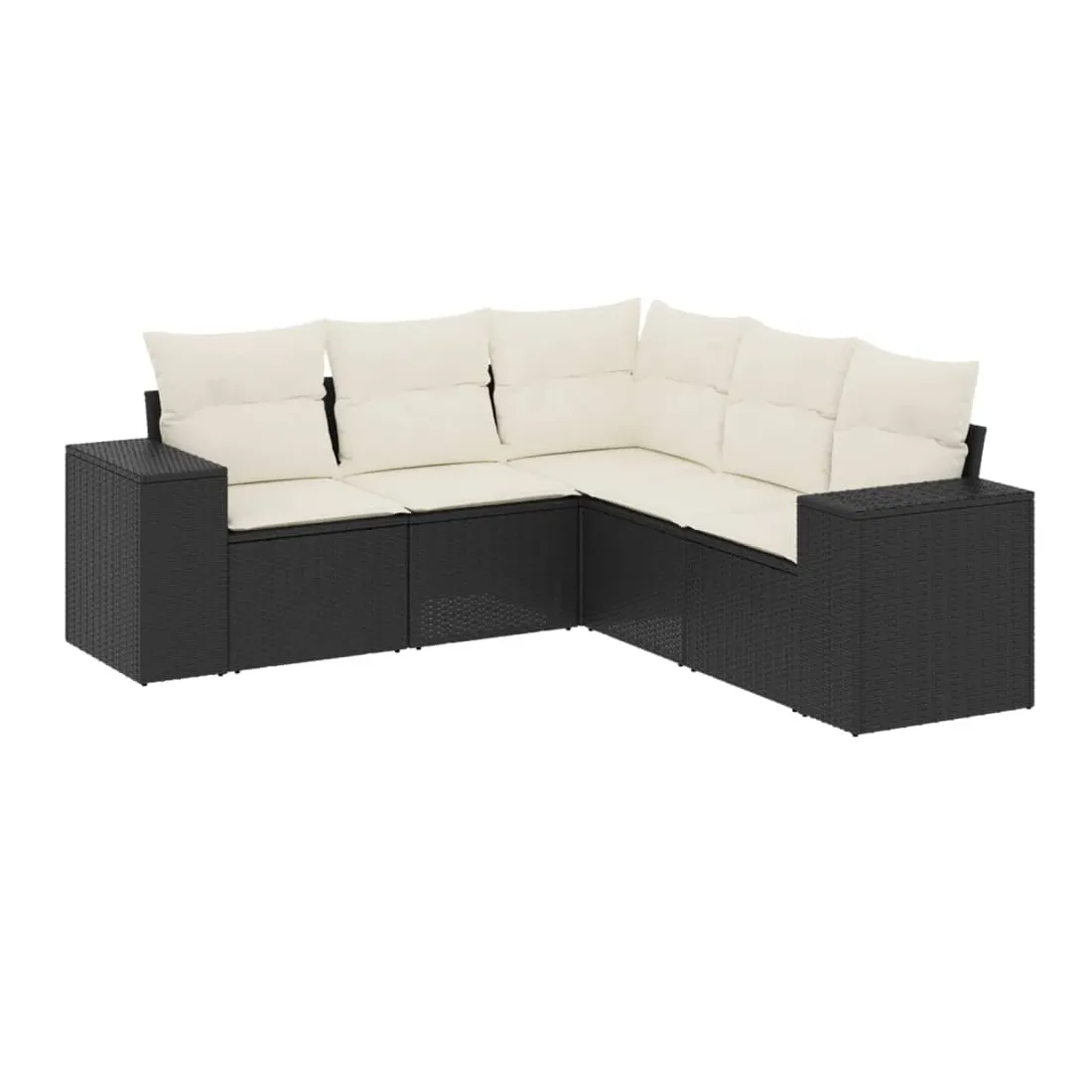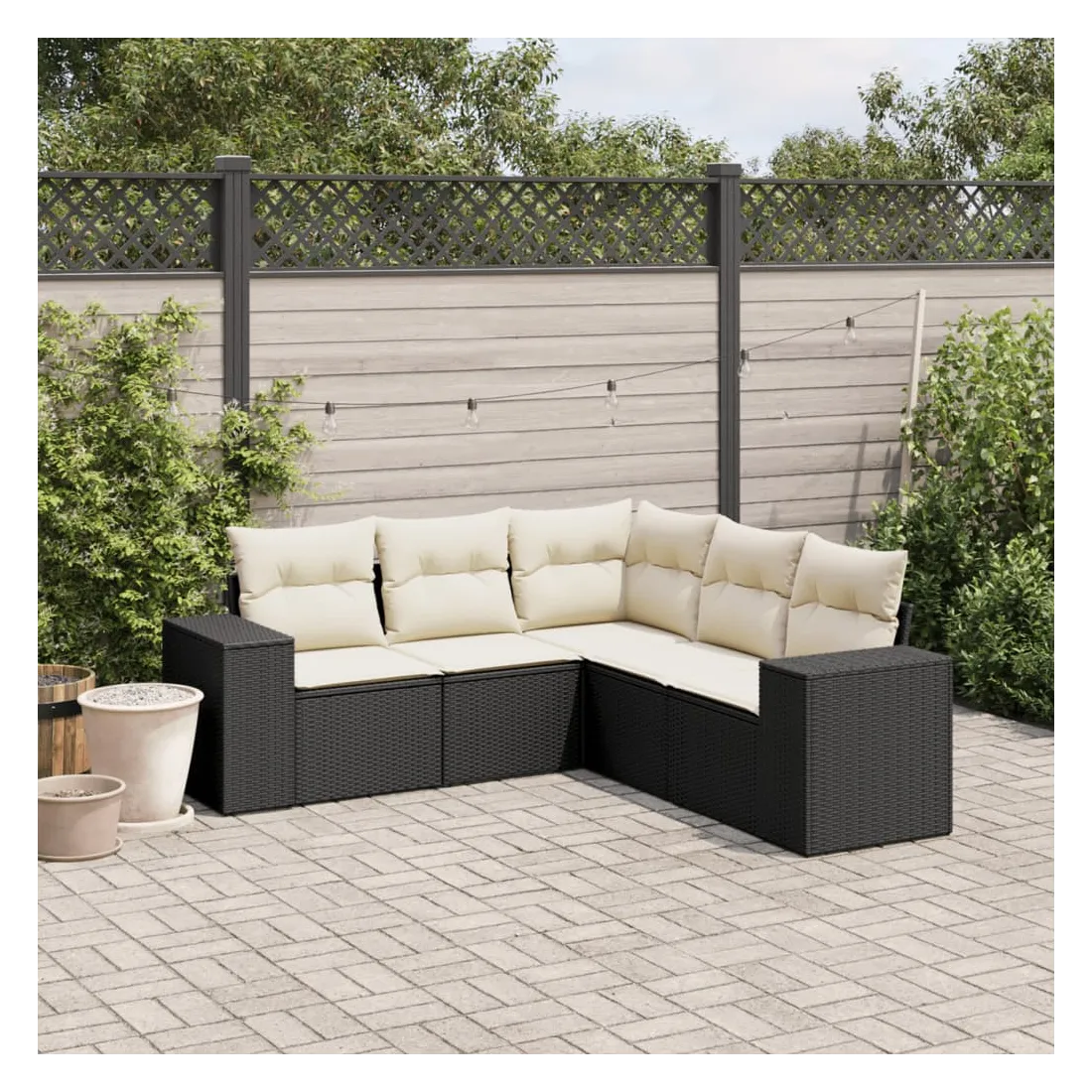 Salon de jardin 5 pcs avec coussins noir résine tressée