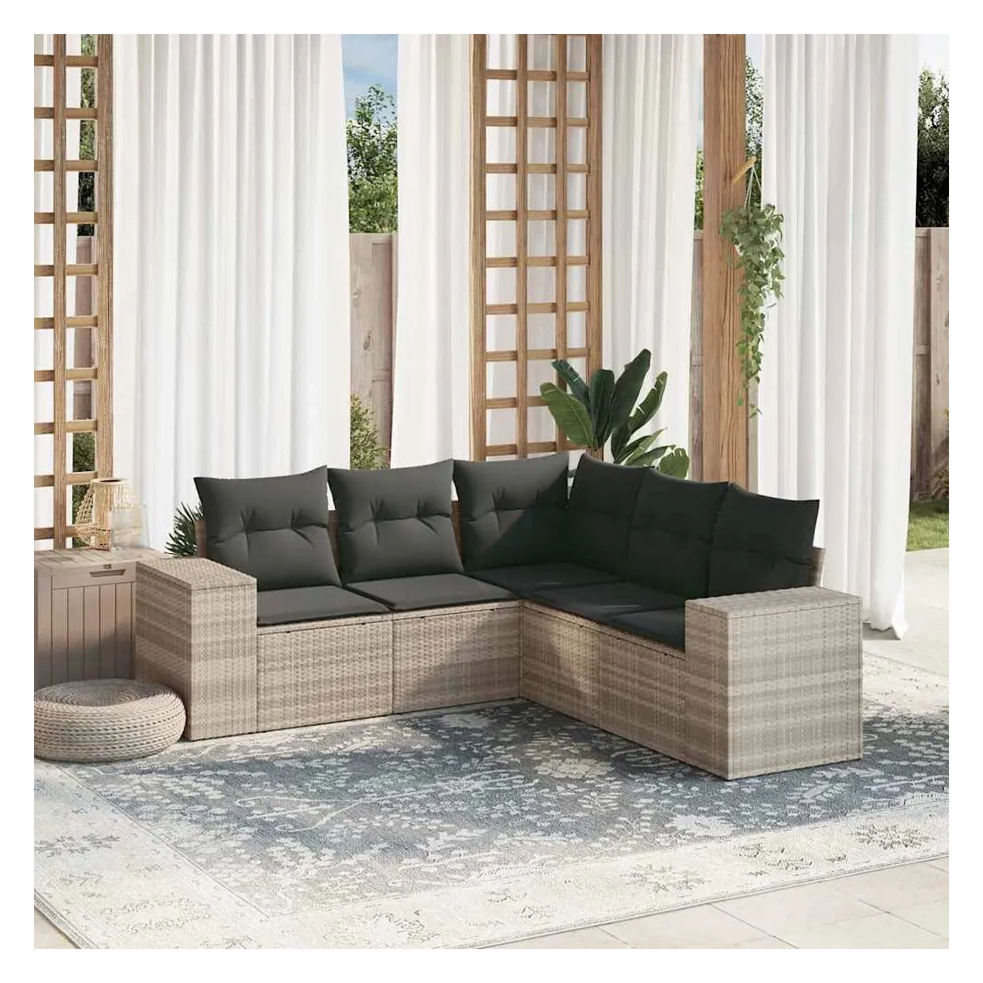 Salon de jardin 5 pcs avec coussins gris clair résine tressée