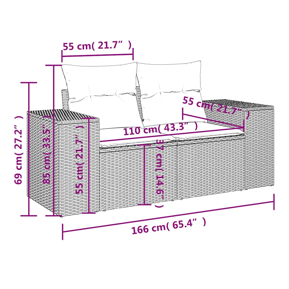 • Dimensions du coussin de dossier : 55 x 45 x 13 cm (L x l x é)