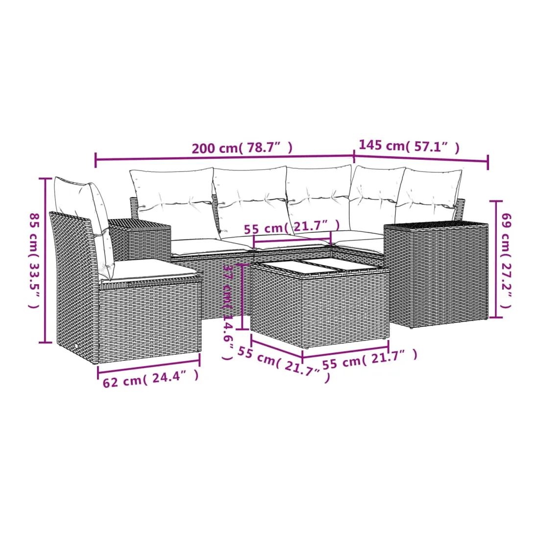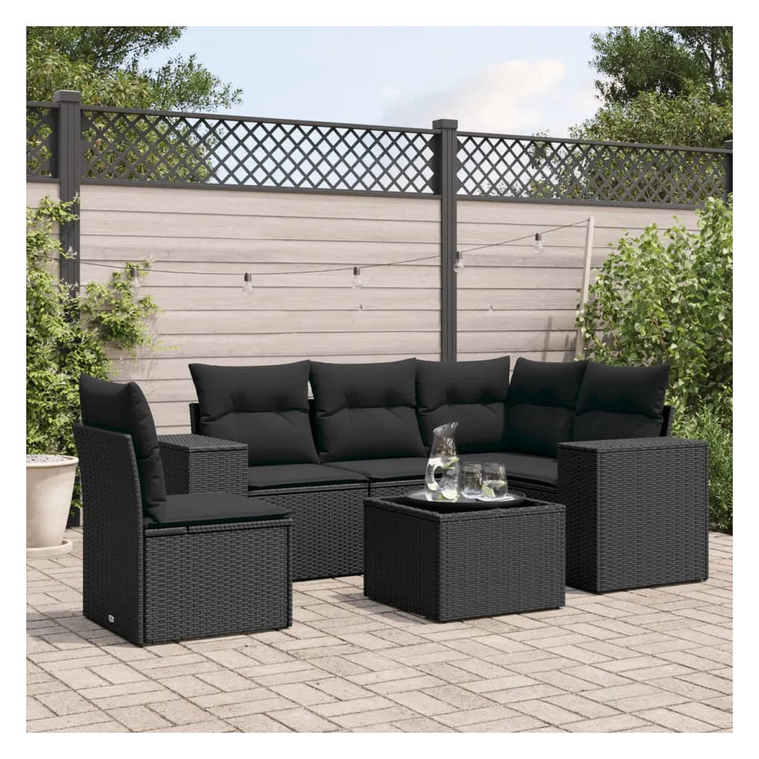 Salon de jardin 6 pcs avec coussins noir résine tressée