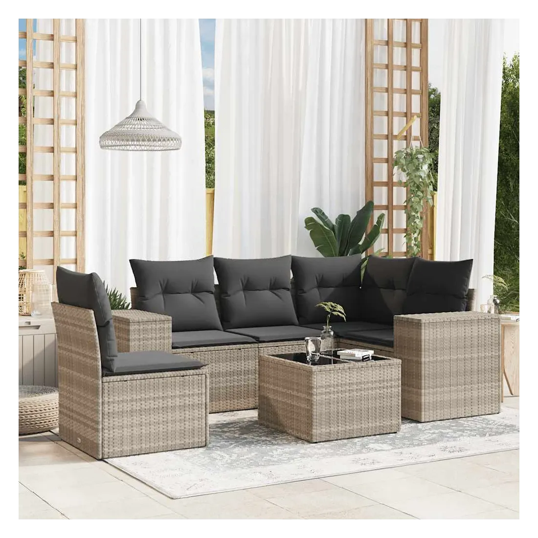Cet ensemble de canapés de jardin est le complément parfait de votre arrière-cour, terrasse ou patio, offrant un espace confortable et accueillant pour discuter avec la famille et les amis ou simplement se détendre et profiter de l'extérieur. Matériau durable : la résine tressée, également connue sous le nom de poly rotin, est un matériau synthétique solide et nécessitant peu d'entretien qui ressemble au rotin naturel. Il est léger, facile à nettoyer et couramment utilisé pour les meubles d'extérieur en raison de sa durabilité et de ses propriétés de résistance aux intempéries.Expérience d'assise confortable : ce mobilier d'extérieur, doté de coussins épais, offre une expérience d'assise confortable.Dessus en verre : le dessus de la table d'extérieur est fabriqué en verre trempé solide et durable, ce qui le rend facile à nettoyer avec un chiffon humide et ajoute une touche d'élégance à votre espace extérieur.Housse amovible et lavable : ces coussins de siège sont dotés de housses amovibles pour un lavage et un entretien faciles.Conception modulaire : cet ensemble de meubles d'extérieur a une conception modulaire, ce qui le rend complètement flexible et facile à déplacer, afin que vous puissiez créer un agencement de meubles d'extérieur personnalisé. Bon à savoir :Pour que vos meubles d'extérieur restent beaux, nous vous recommandons de les protéger avec une housse imperméable.