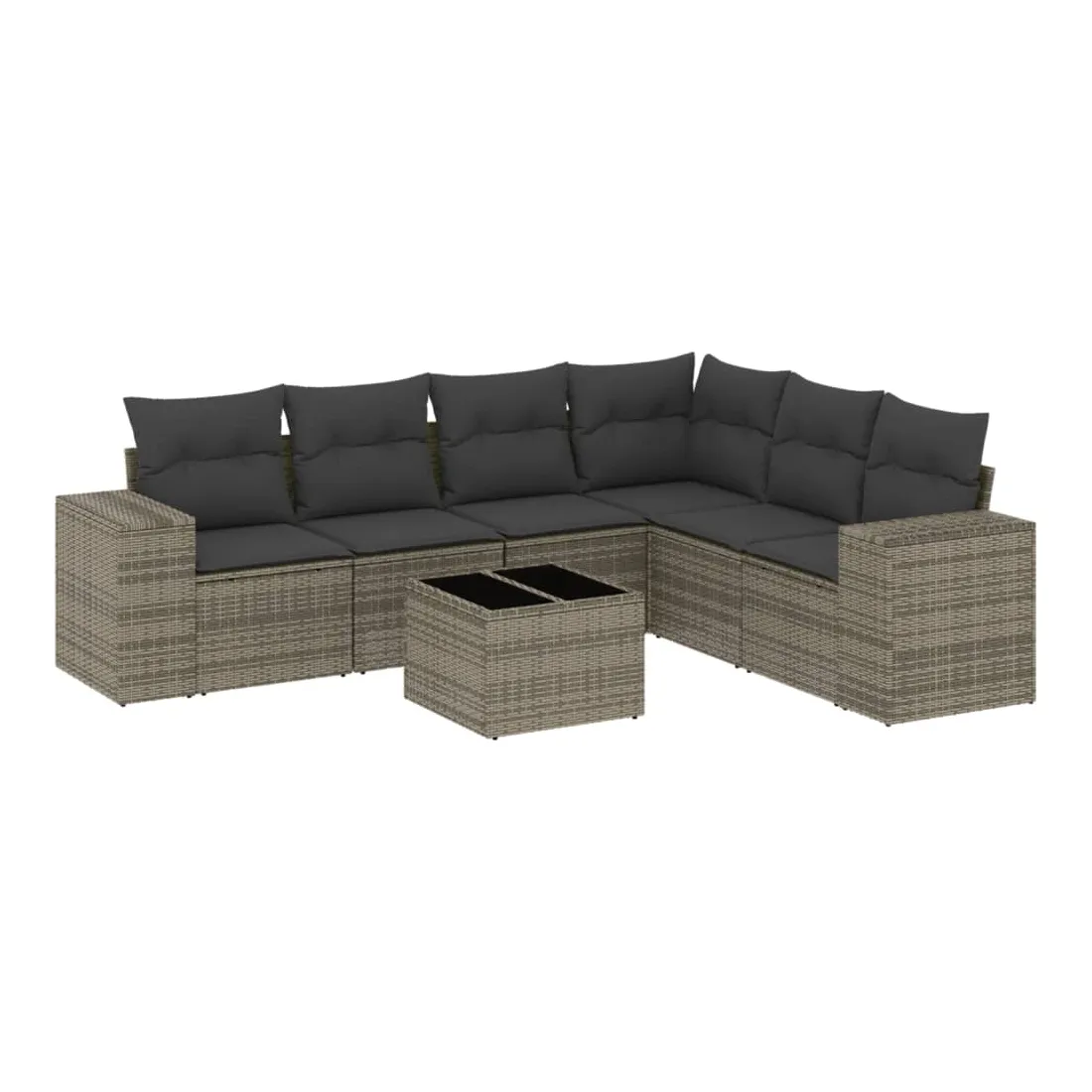 Salon de jardin avec coussins 7 pcs gris résine tressée
