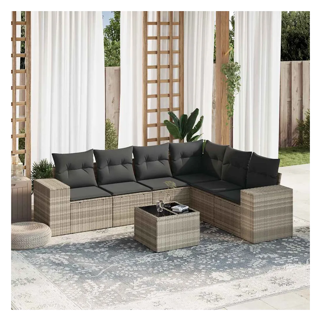 Salon de jardin avec coussins 7 pcs gris clair résine tressée