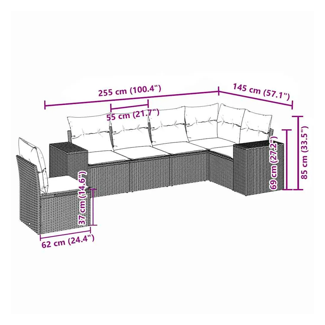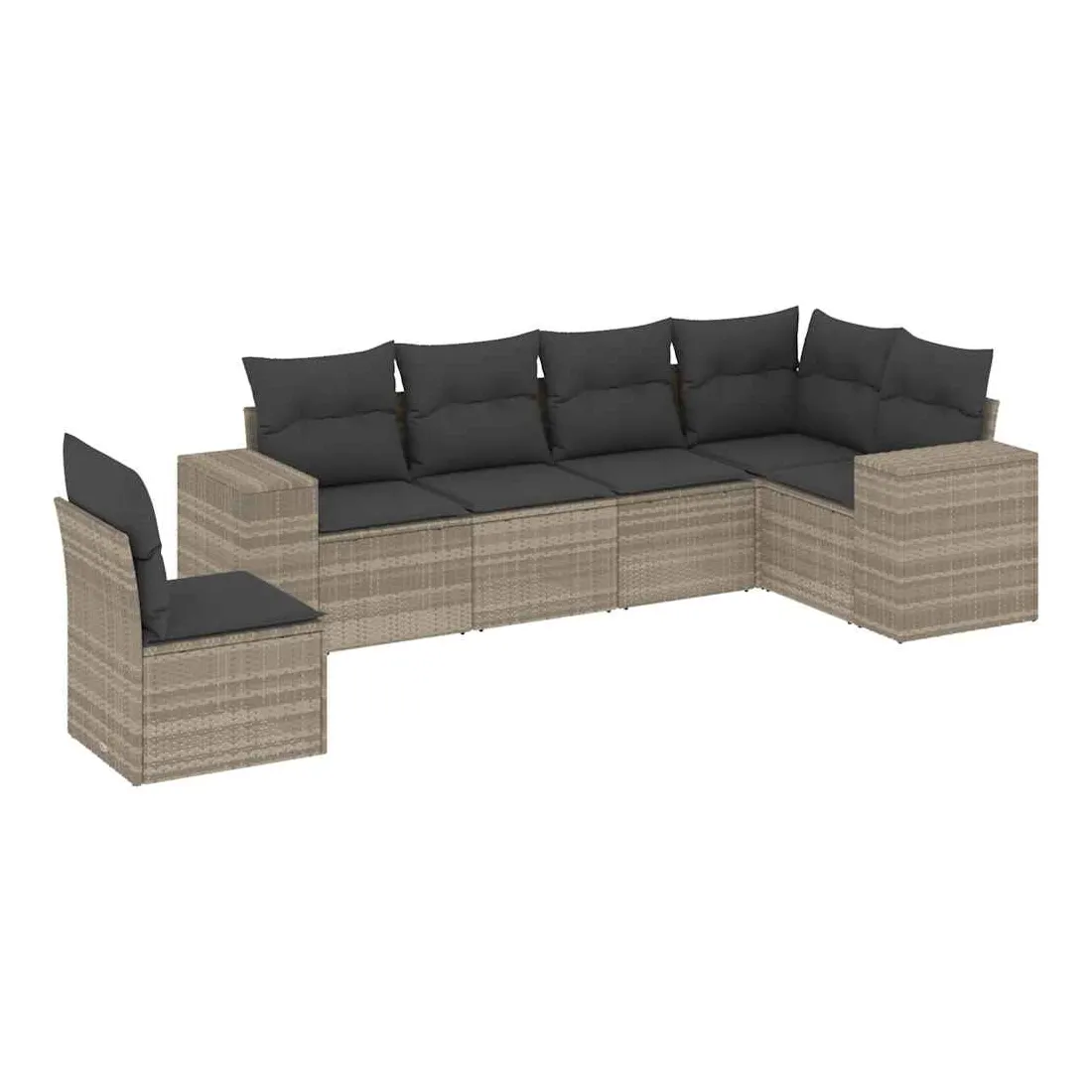Salon de jardin 6 pcs avec coussins gris clair résine tressée
