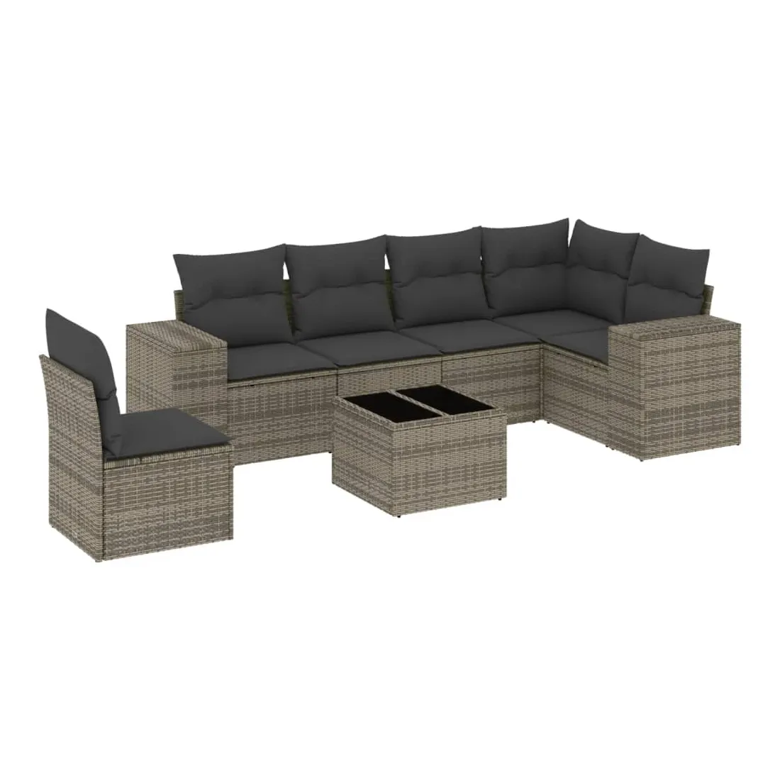 Salon de jardin avec coussins 7 pcs gris résine tressée