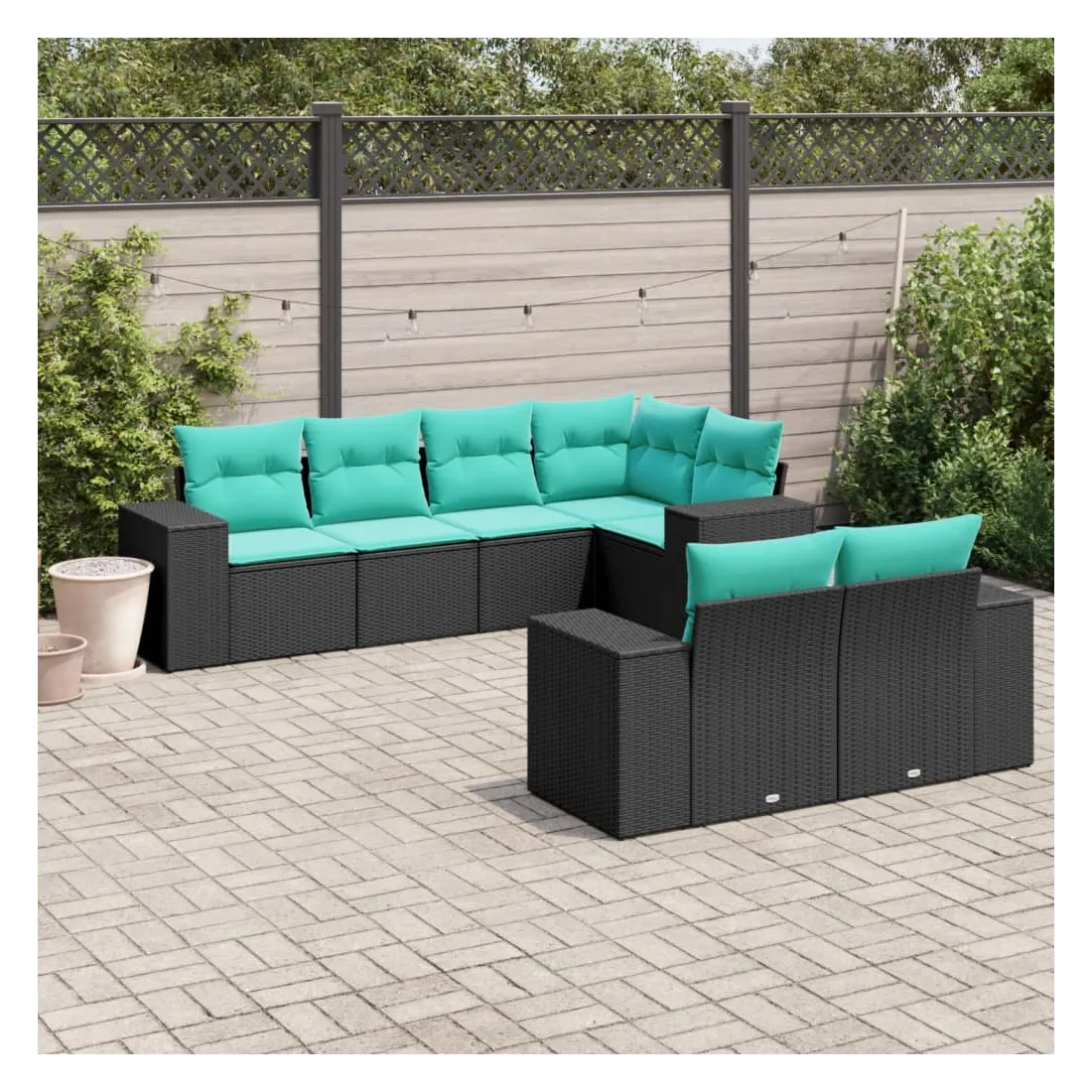 Cet ensemble de canapés de jardin est le complément parfait de votre arrière-cour, terrasse ou patio, offrant un espace confortable et accueillant pour discuter avec la famille et les amis ou simplement se détendre et profiter de l'extérieur. Matériau durable : la résine tressée, également connue sous le nom de poly rotin, est un matériau synthétique solide et nécessitant peu d'entretien qui ressemble au rotin naturel. Elle est légère, facile à nettoyer et couramment utilisée pour les meubles d'extérieur en raison de sa durabilité et de ses propriétés de résistance aux intempéries.Expérience d'assise confortable : ce mobilier d'extérieur, doté de coussins épais, offre une expérience d'assise confortable.Housse amovible et lavable : ces coussins de siège sont dotés de housses amovibles pour un lavage et un entretien faciles.Conception modulaire : cet ensemble de meubles d'extérieur a une conception modulaire, ce qui le rend complètement flexible et facile à déplacer, afin que vous puissiez créer un agencement de meubles d'extérieur personnalisé. Bon à savoir :Pour que vos meubles d'extérieur restent beaux, nous vous recommandons de les protéger avec une housse imperméable.