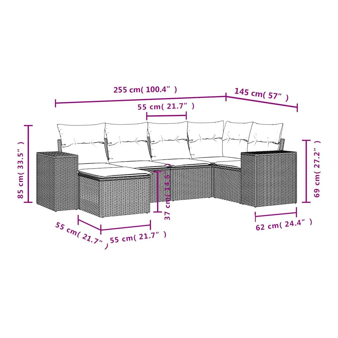 - Dimensions : 55 x 55 x 37 cm (l x P x H)