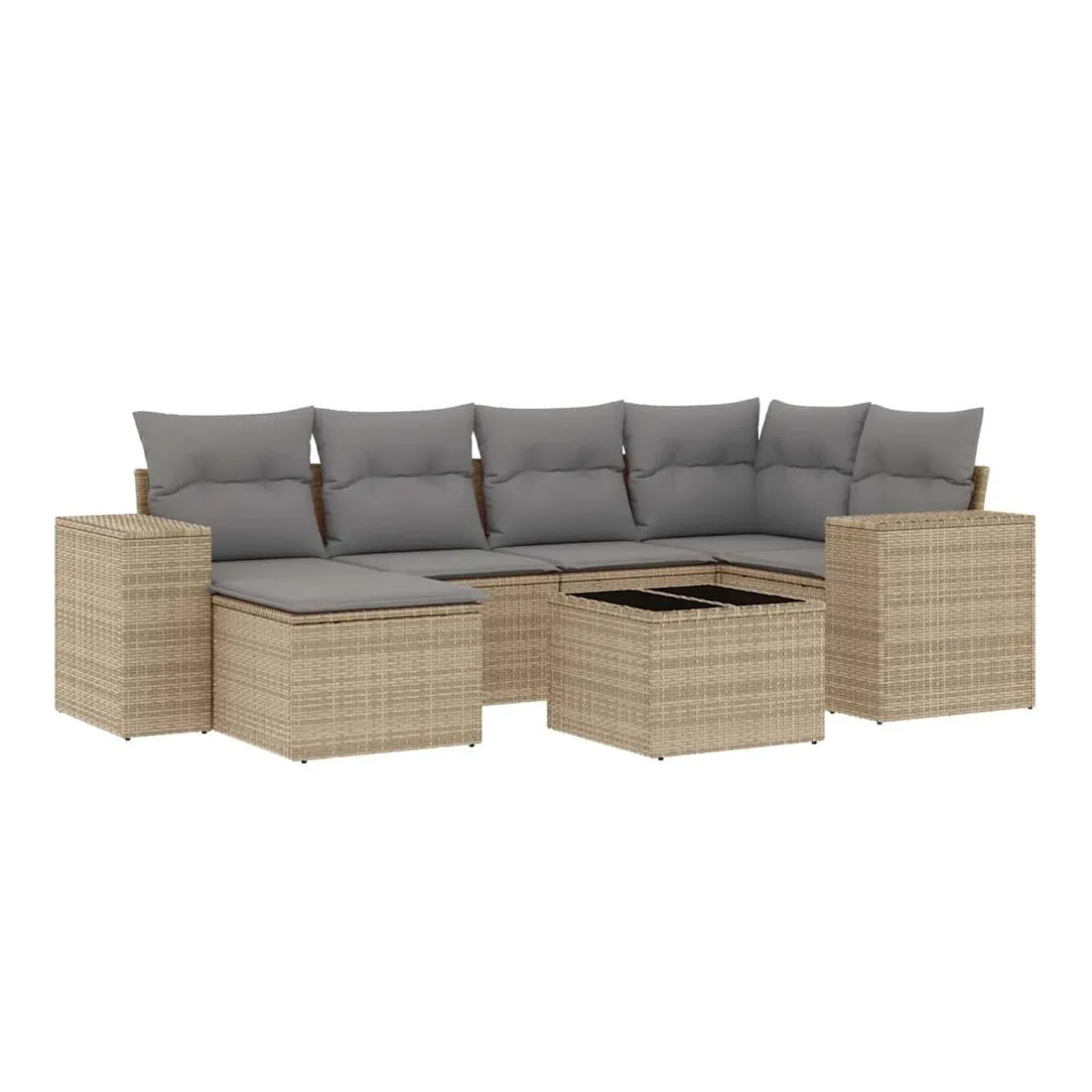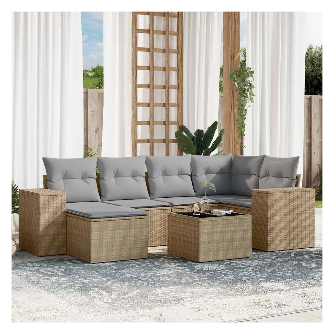 Cet ensemble de canapés de jardin est le complément parfait de votre arrière-cour, terrasse ou patio, offrant un espace confortable et accueillant pour discuter avec la famille et les amis ou simplement se détendre et profiter de l'extérieur. Matériau durable : la résine tressée, également connue sous le nom de poly rotin, est un matériau synthétique solide et nécessitant peu d'entretien qui ressemble au rotin naturel. Il est léger, facile à nettoyer et couramment utilisé pour les meubles d'extérieur en raison de sa durabilité et de ses propriétés de résistance aux intempéries.Expérience d'assise confortable : ce mobilier d'extérieur, doté de coussins épais, offre une expérience d'assise confortable.Dessus en verre : le dessus de la table d'extérieur est fabriqué en verre trempé solide et durable, ce qui le rend facile à nettoyer avec un chiffon humide et ajoute une touche d'élégance à votre espace extérieur.Housse amovible et lavable : ces coussins de siège sont dotés de housses amovibles pour un lavage et un entretien faciles.Conception modulaire : cet ensemble de meubles d'extérieur a une conception modulaire, ce qui le rend complètement flexible et facile à déplacer, afin que vous puissiez créer un agencement de meubles d'extérieur personnalisé. Bon à savoir :Pour que vos meubles d'extérieur restent beaux, nous vous recommandons de les protéger avec une housse imperméable.