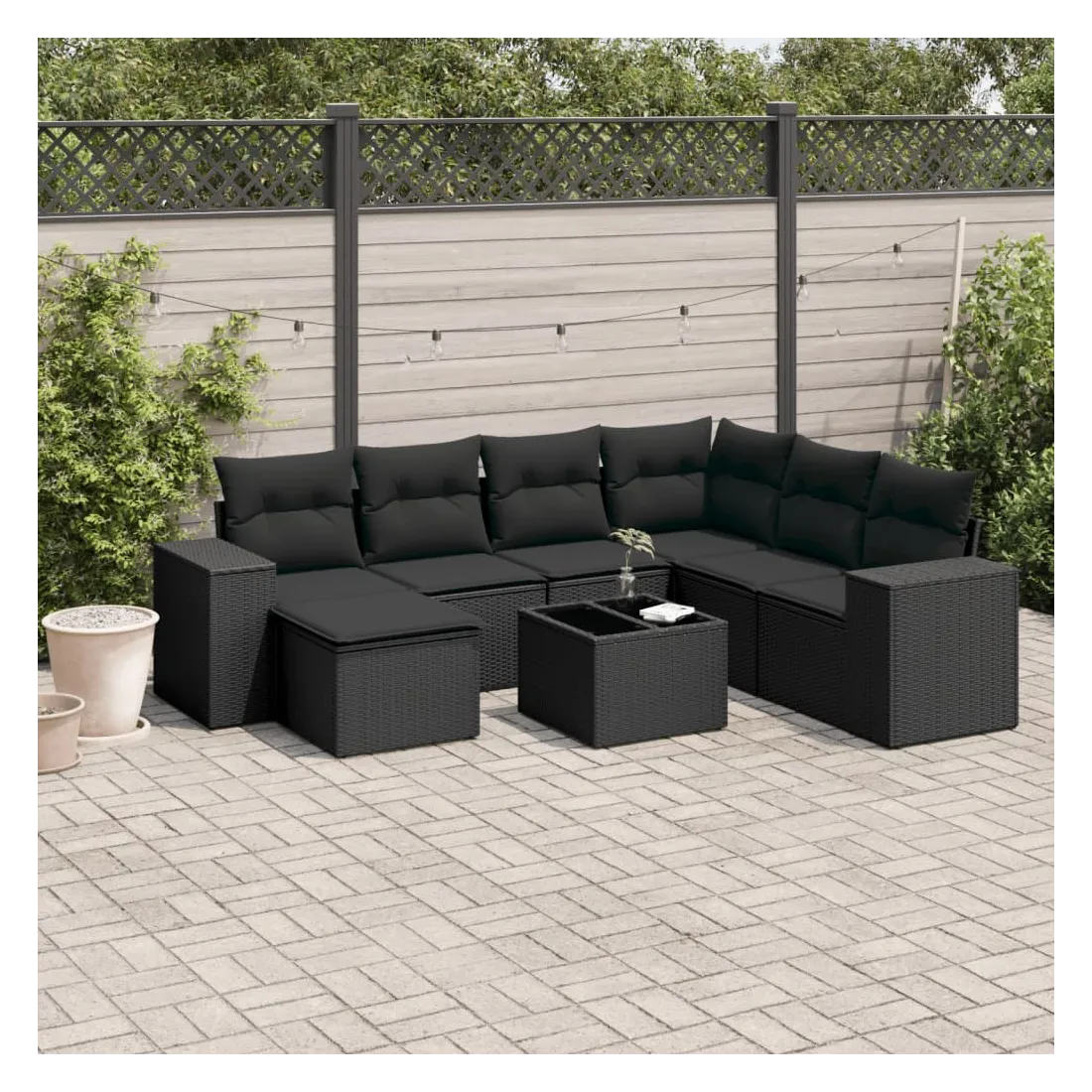 Cet ensemble de canapés de jardin est le complément parfait de votre arrière-cour, terrasse ou patio, offrant un espace confortable et accueillant pour discuter avec la famille et les amis ou simplement se détendre et profiter de l'extérieur. Matériau durable : la résine tressée, également connue sous le nom de poly rotin, est un matériau synthétique solide et nécessitant peu d'entretien qui ressemble au rotin naturel. Il est léger, facile à nettoyer et couramment utilisé pour les meubles d'extérieur en raison de sa durabilité et de ses propriétés de résistance aux intempéries.Expérience d'assise confortable : ce mobilier d'extérieur, doté de coussins épais, offre une expérience d'assise confortable.Dessus en verre : le dessus de la table d'extérieur est fabriqué en verre trempé solide et durable, ce qui le rend facile à nettoyer avec un chiffon humide et ajoute une touche d'élégance à votre espace extérieur.Housse amovible et lavable : ces coussins de siège sont dotés de housses amovibles pour un lavage et un entretien faciles.Conception modulaire : cet ensemble de meubles d'extérieur a une conception modulaire, ce qui le rend complètement flexible et facile à déplacer, afin que vous puissiez créer un agencement de meubles d'extérieur personnalisé. Bon à savoir :Pour que vos meubles d'extérieur restent beaux, nous vous recommandons de les protéger avec une housse imperméable.