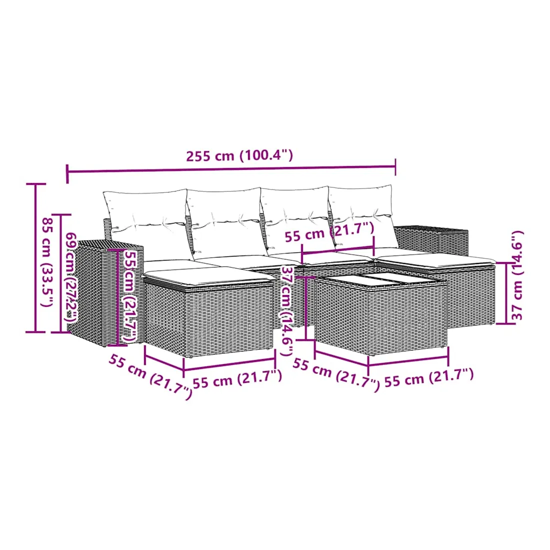 - Dimensions : 55 x 55 x 37 cm (L x l x H)