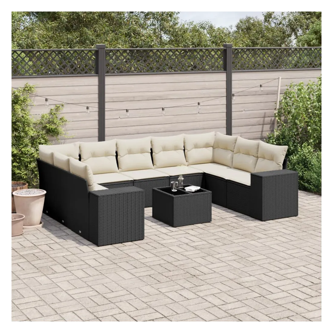 Salon de jardin 10 pcs avec coussins noir résine tressée