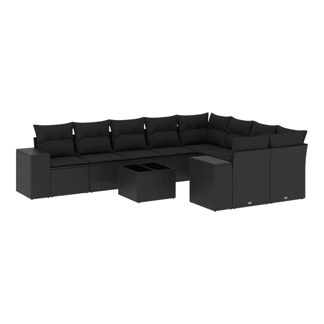 Salon de jardin 10 pcs avec coussins noir résine tressée