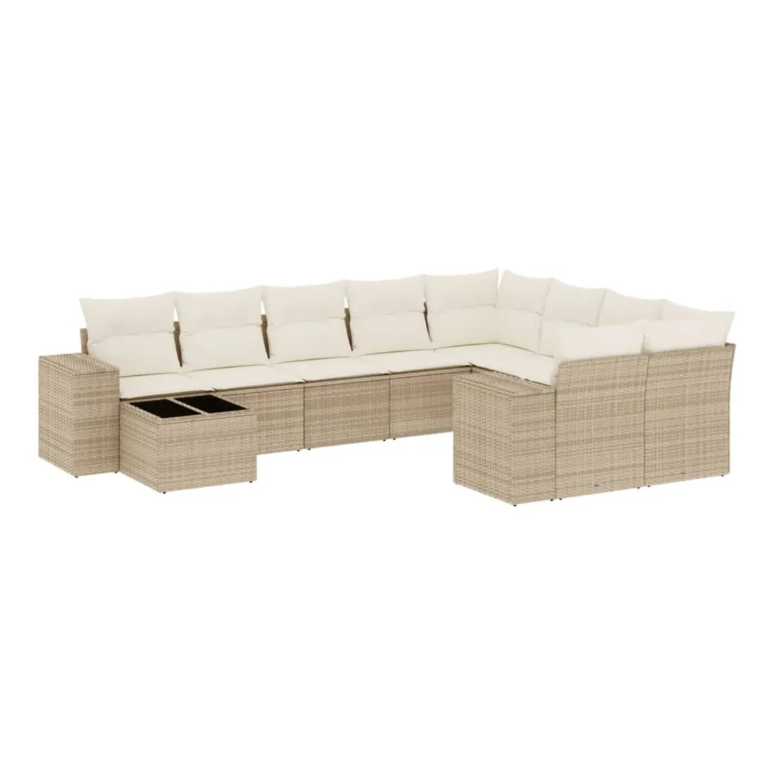 Salon de jardin avec coussins 10 pcs beige résine tressée
